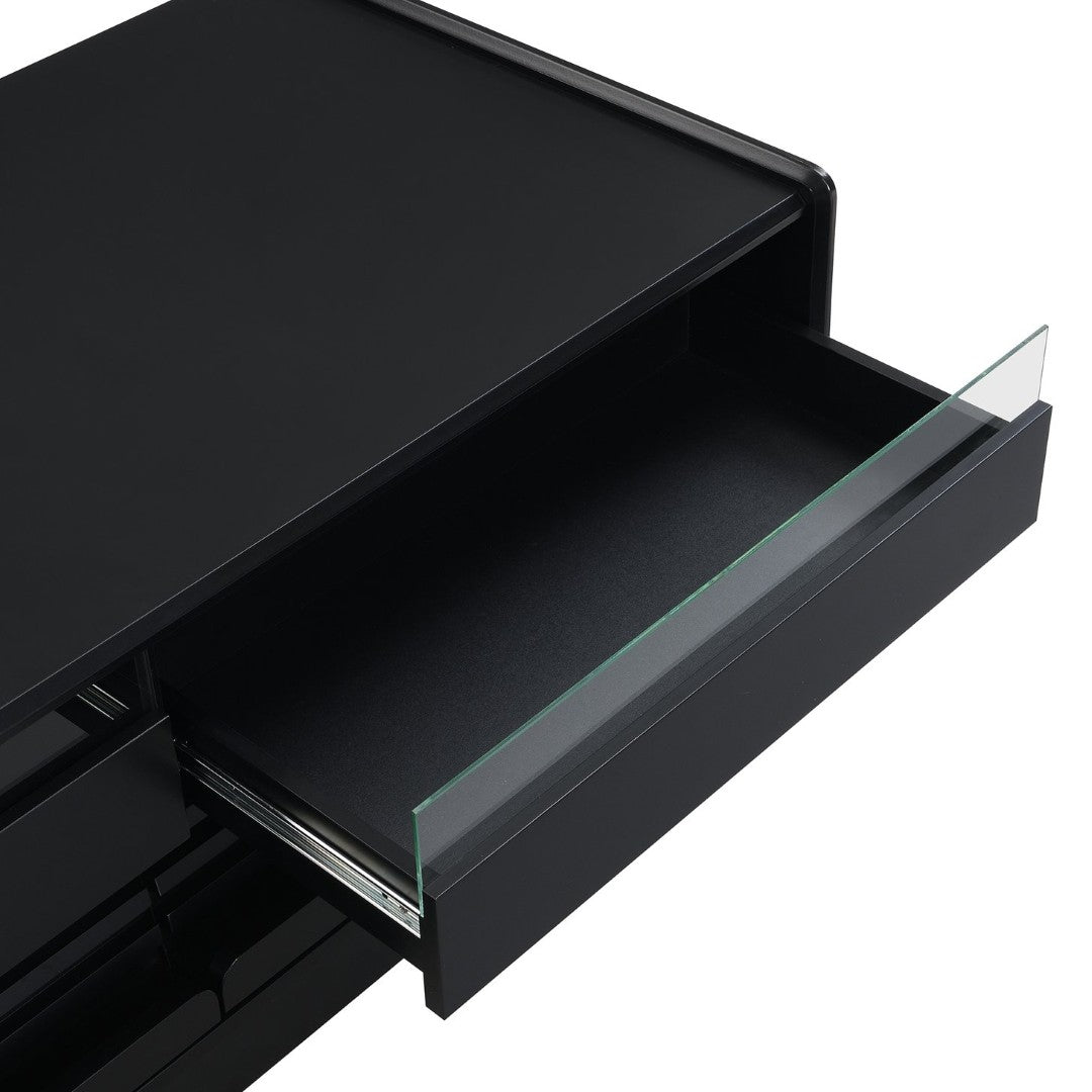 - 【Sturdy & Durable Structure】The coffee table’s structure is constructed from durable MDF, known for its strength and smooth finish.The use of tempered glass for the top two drawers not only enhances the overall aesthetic but also improves the table’s durability.