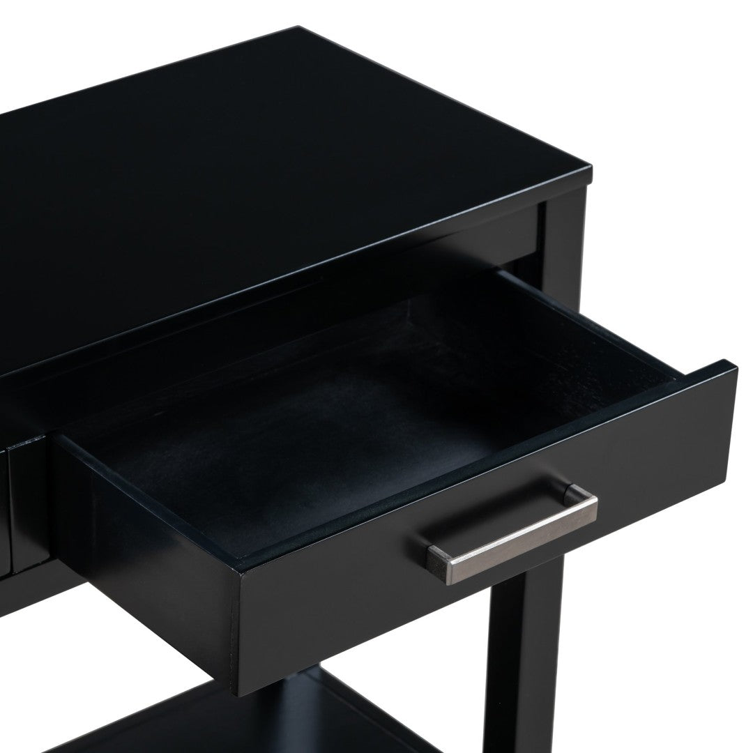 - [3-Drawer Storage]Designed with three spacious drawers, this Sofa table offers a practical solution for organizing daily essentials—keys, mail, chargers, and more. The smooth-gliding drawers keep clutter out of sight while preserving a clean, elegant appearance, perfect for entryways or behind-the-sofa storage.