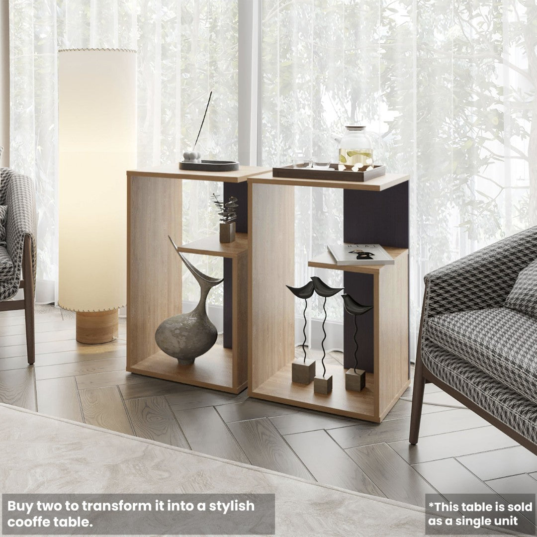 Bring modern utility and Scandinavian-inspired charm to your home with this compact Vega side table. Designed for everyday use, it pairs a durable melamine finish with a warm pine and sleek black palette, offering both an attractive surface and open storage for books, remotes, or decorative items. Its sturdy particleboard construction makes it suitable for living rooms, bedrooms, or entryways where space and style matter.