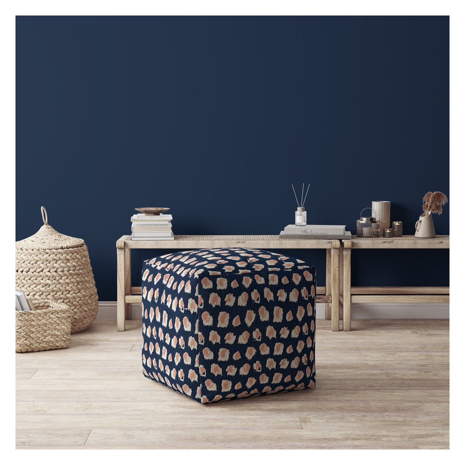 - Add some modern chic to your space with this fashionable pouf that doubles as footrest or extra seat if needed.