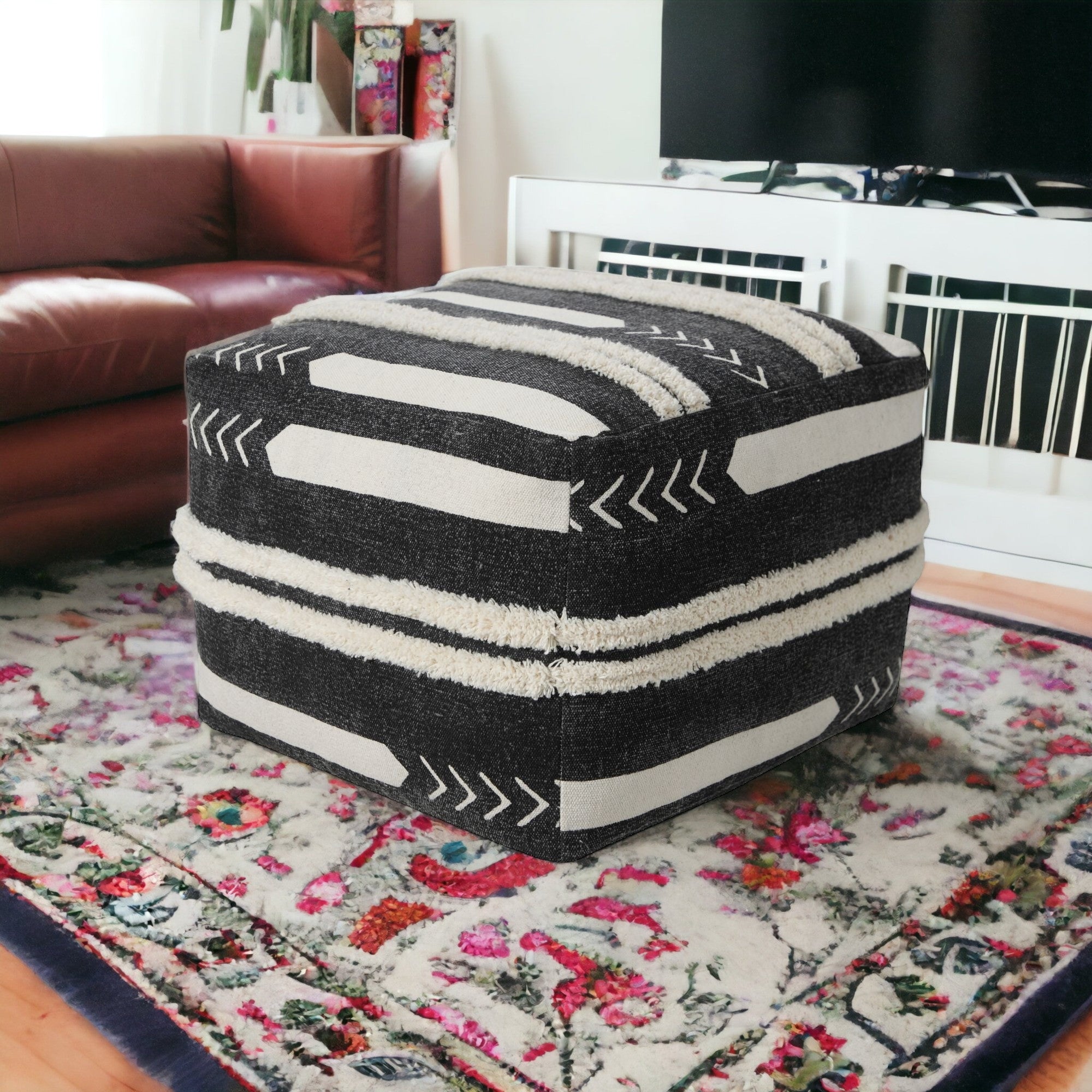 - Versatile pouff floor seating type with a convenient 18-inch size.