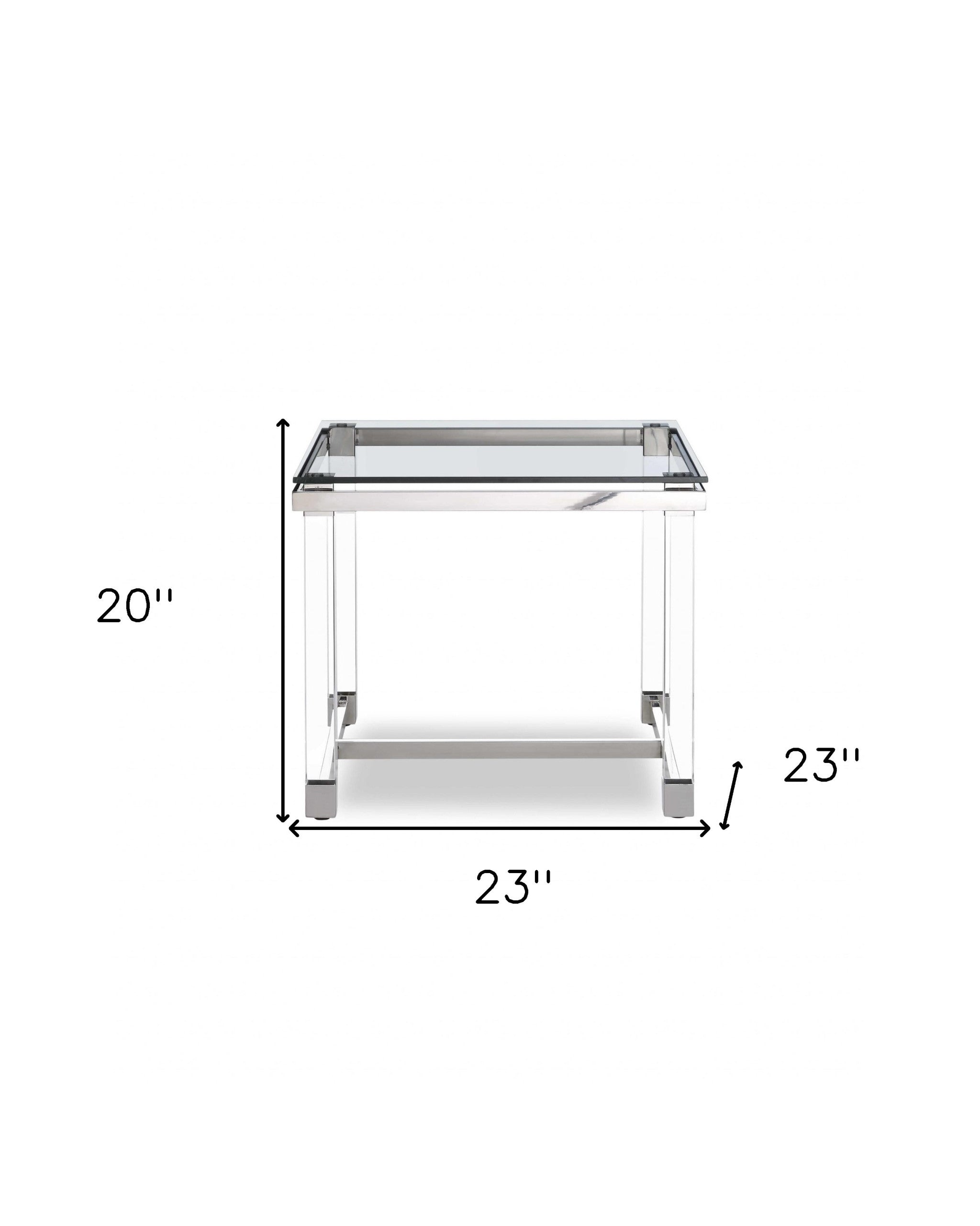 - Features a clear glass square tabletop surface.