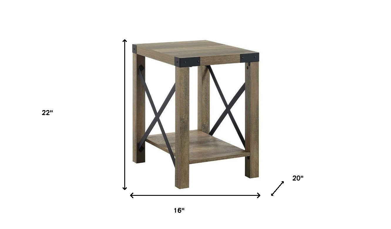 - Features a rustic oak manufactured wood rectangular tabletop surface.