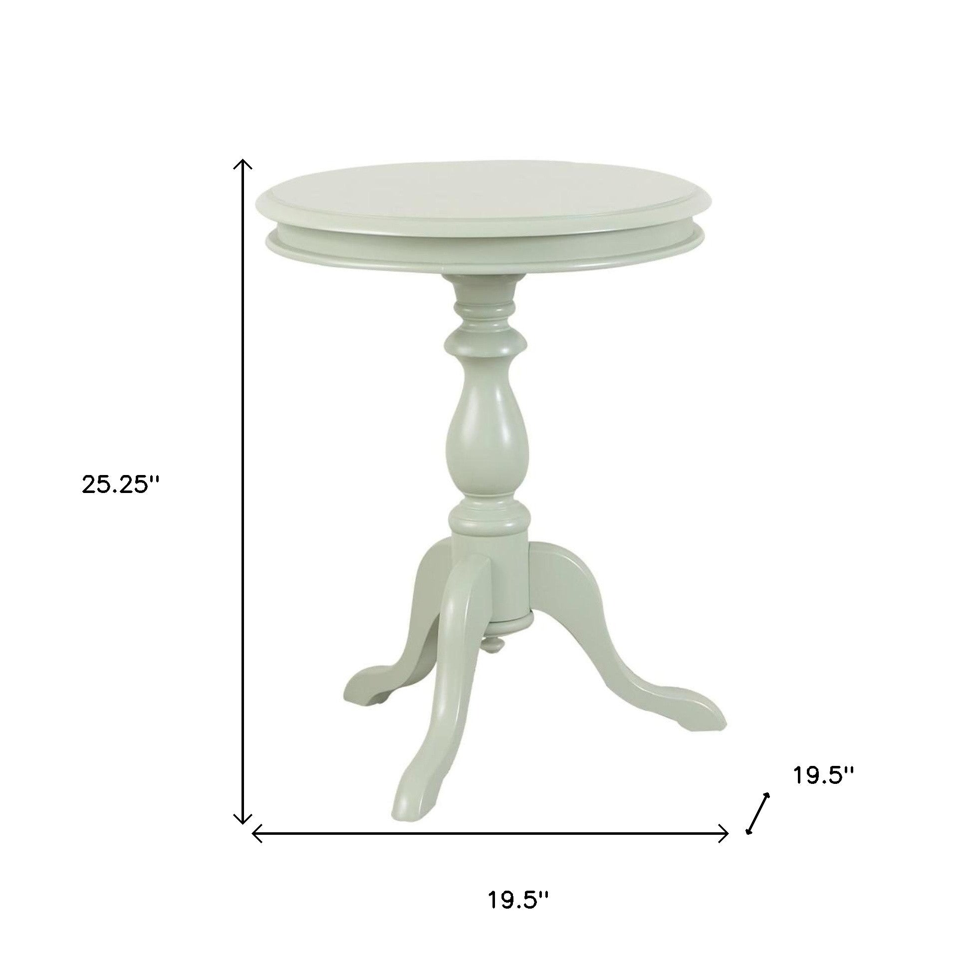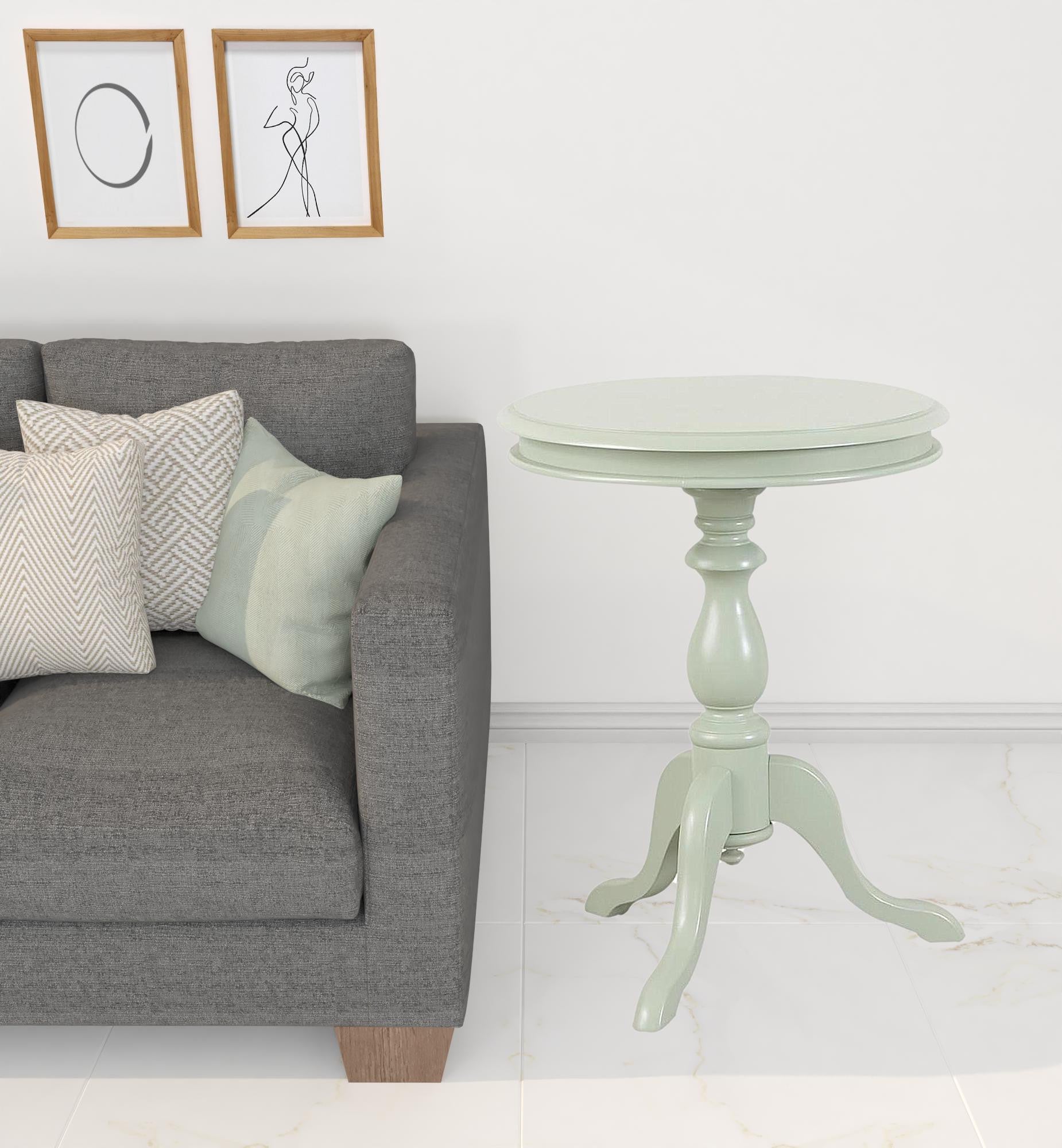 - Modern farmhouse end table with turned style curvy wood pedestal base.
