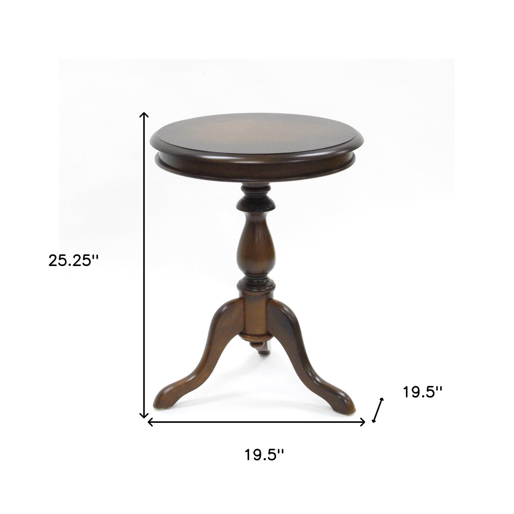 - Modern farmhouse end table with turned style curvy wood pedestal base.