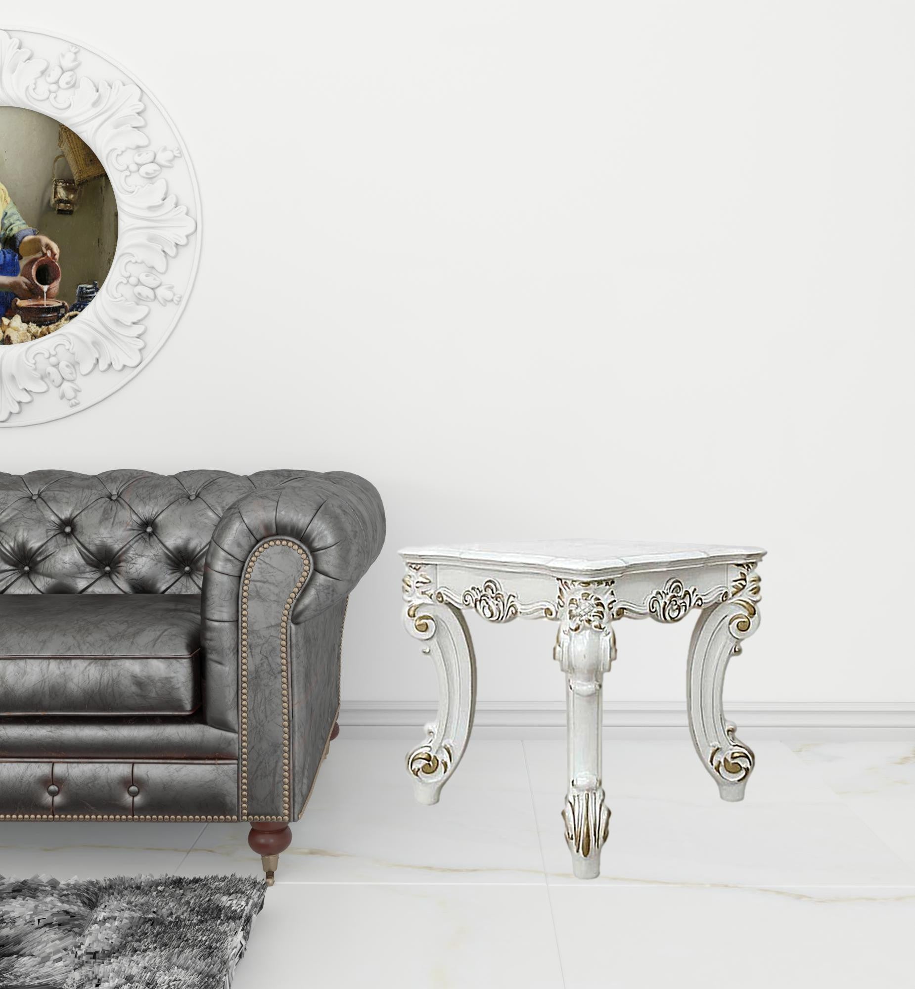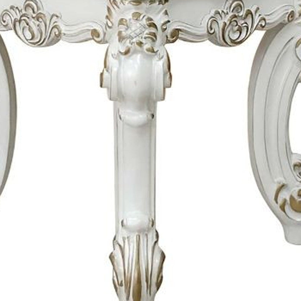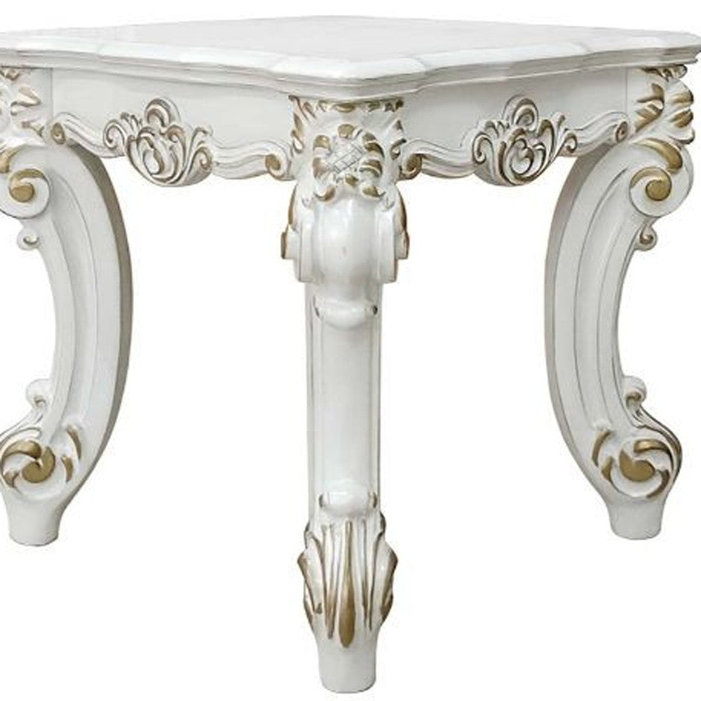- Features an antique pearl manufactured wood square tabletop surface.