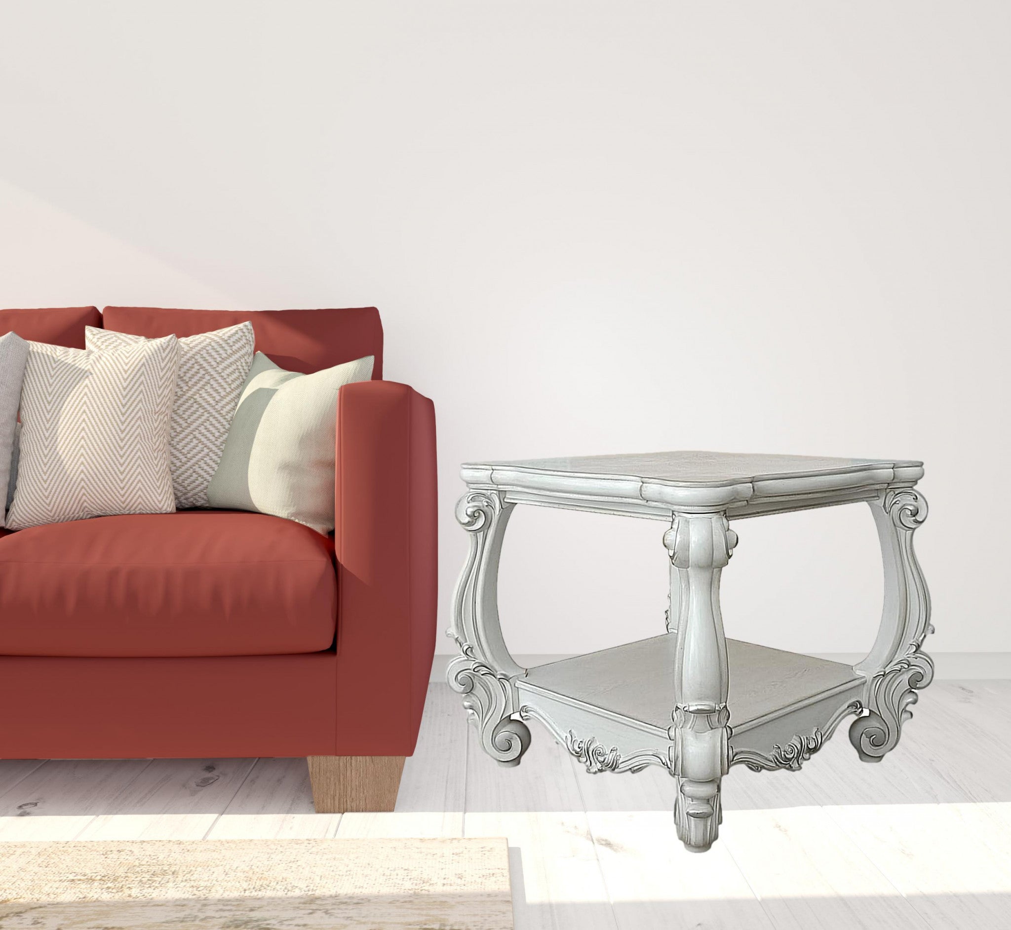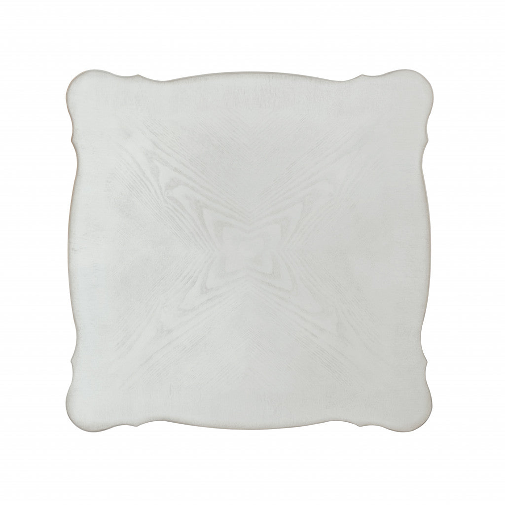 - Features a bone creamy vintage white manufactured wood square tabletop surface.
