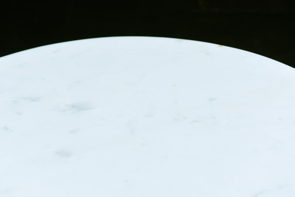 - Features a brown marble round tabletop surface.