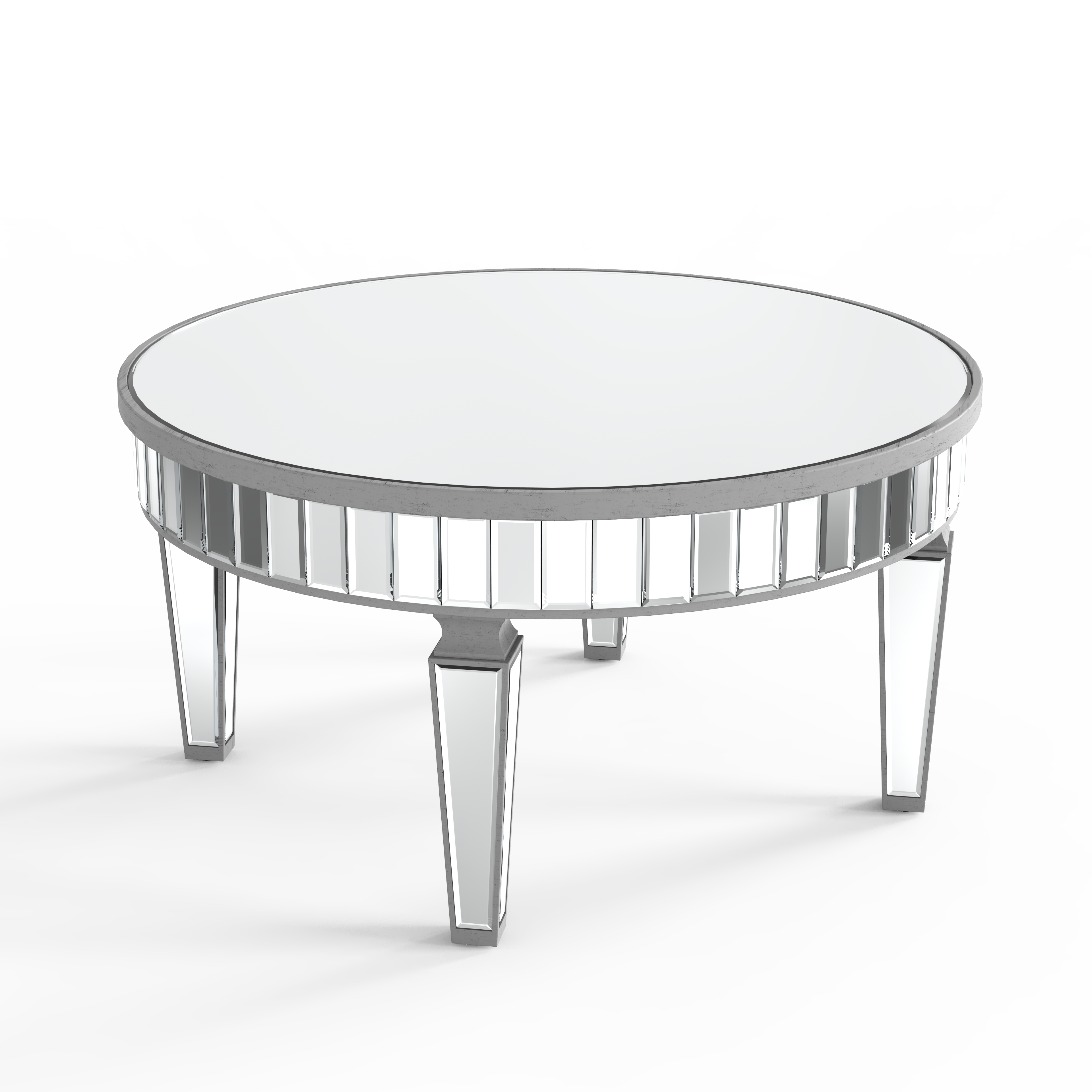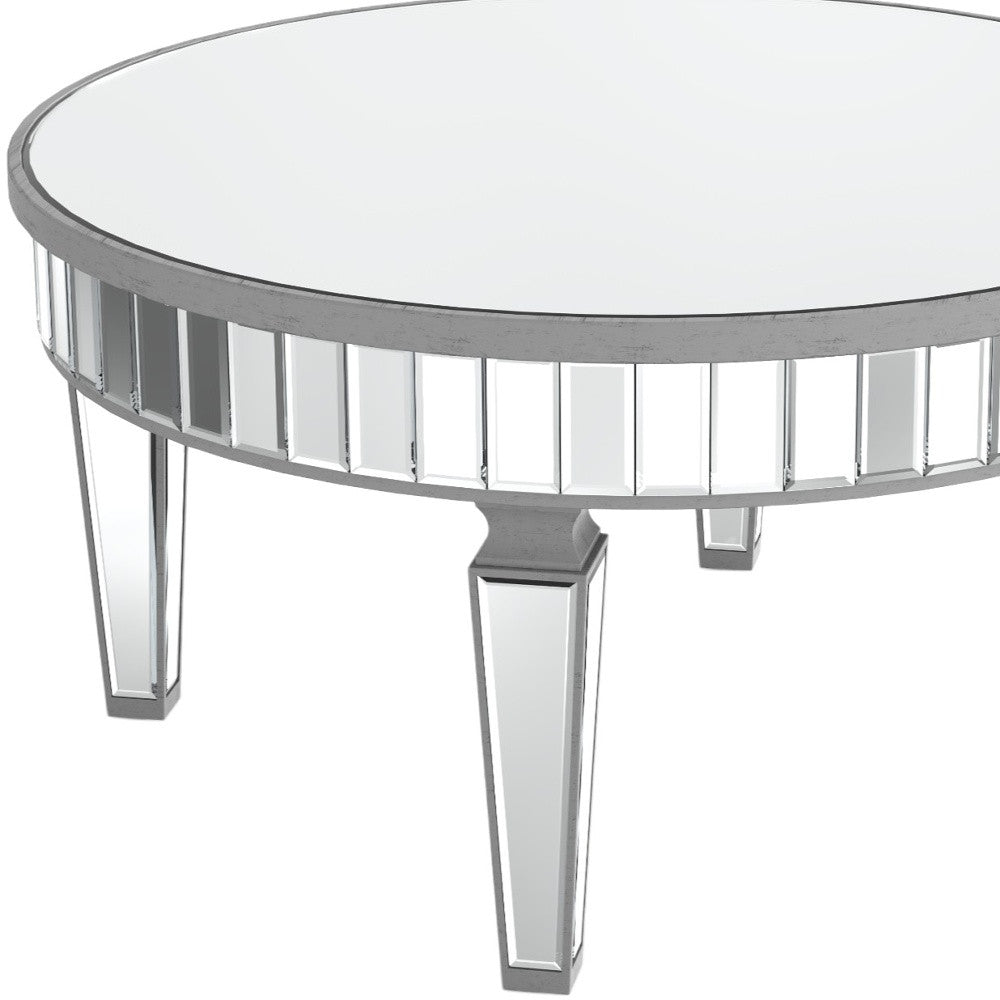 - All over beveled glass round coffee table with an art-deco design sensibility.