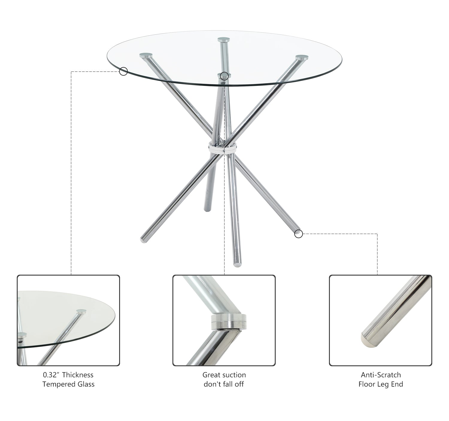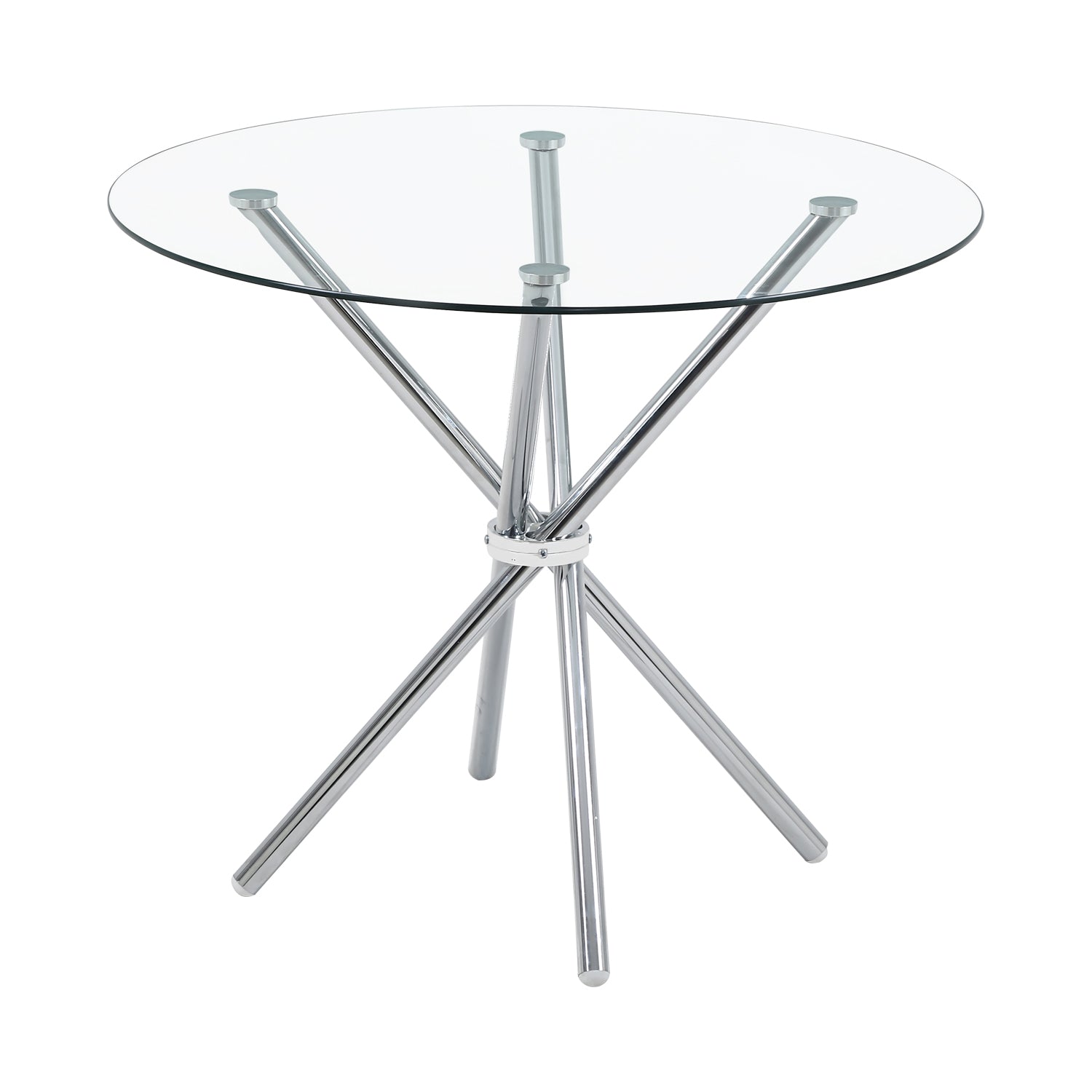 - The top of this table is clear, while the base is a nice compliment in silver.