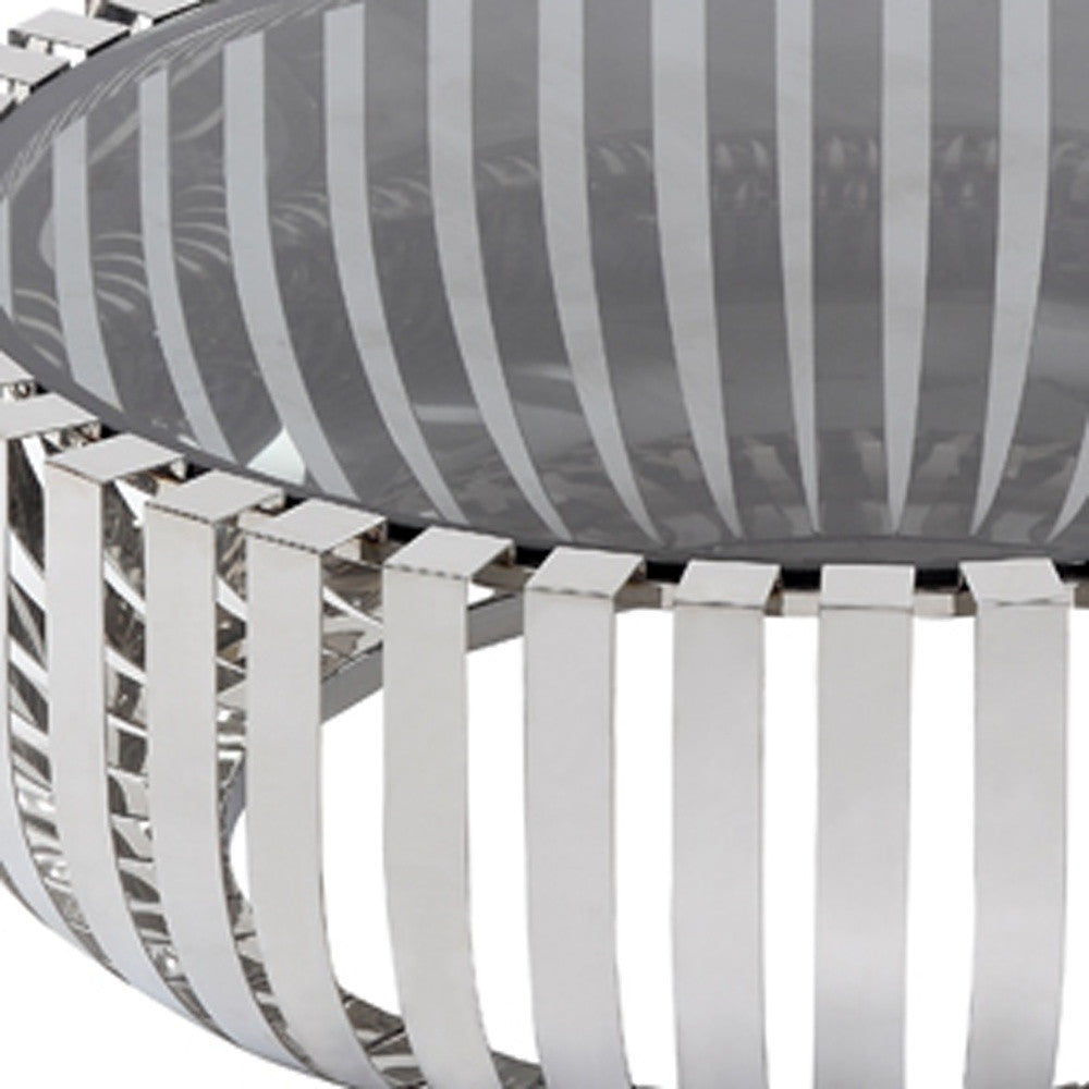 - sleek clear glass top with silver stainless steel base.