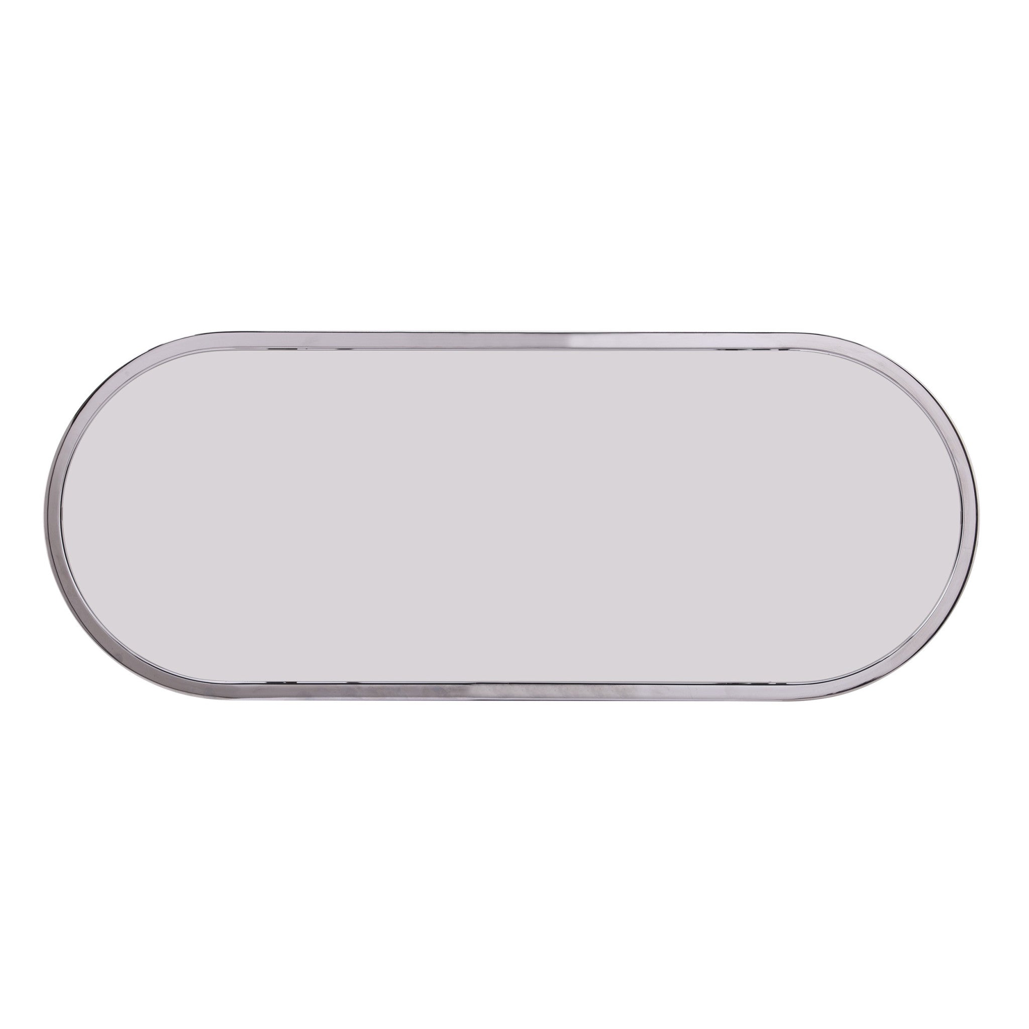 - Mirrored glass top with a stylish oval shape.