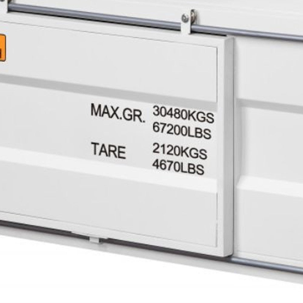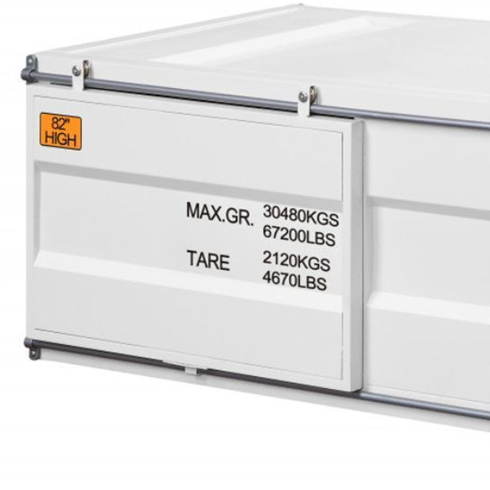 - White Metal Cargo Container Replica Coffee Table with Storage compartment.
