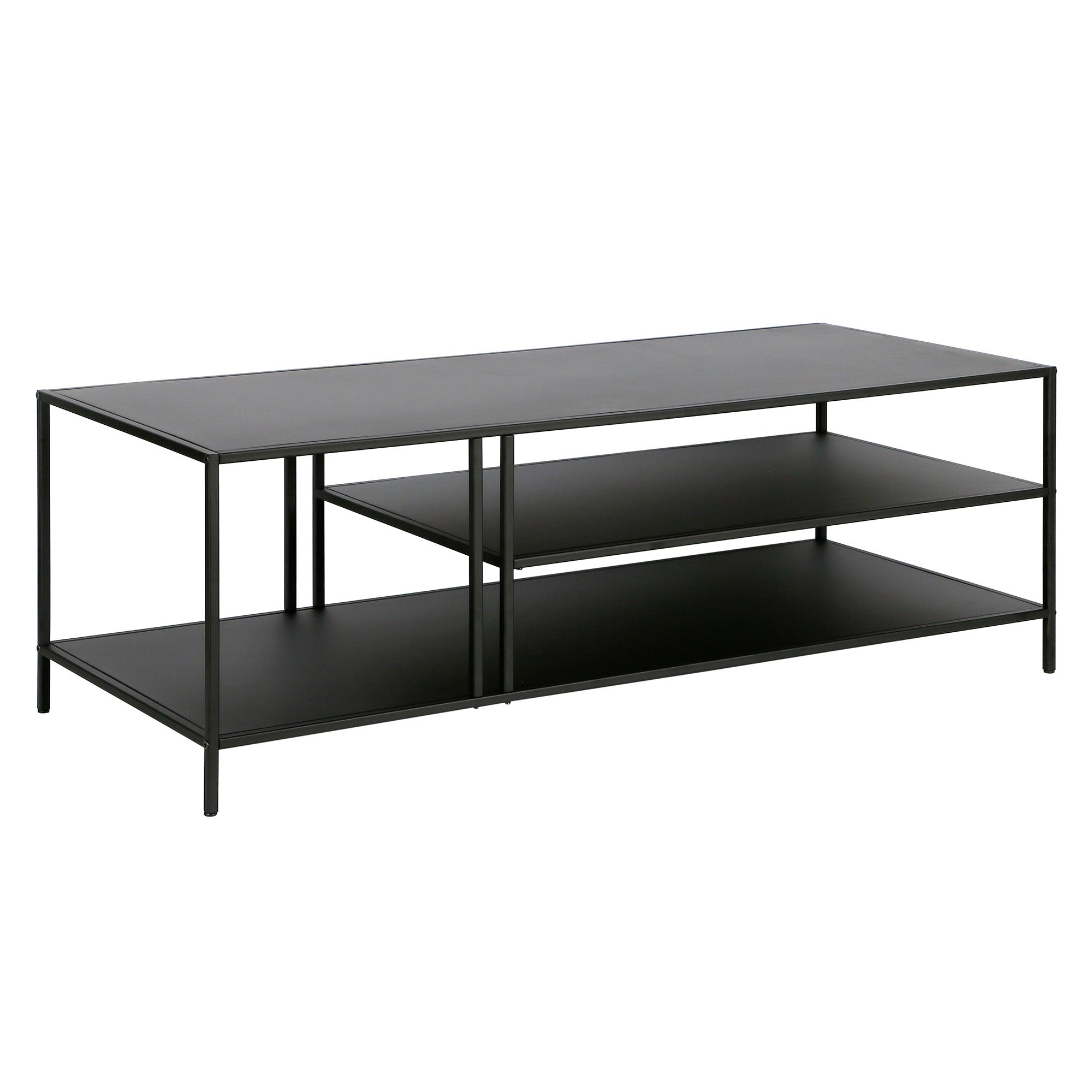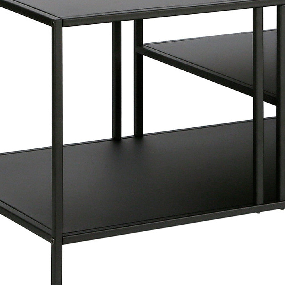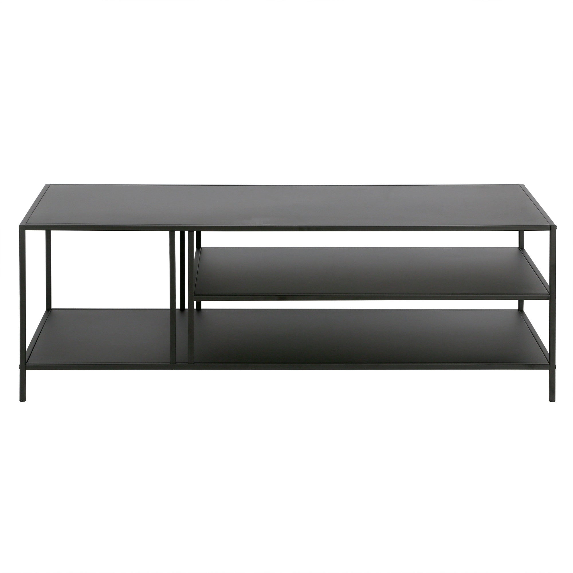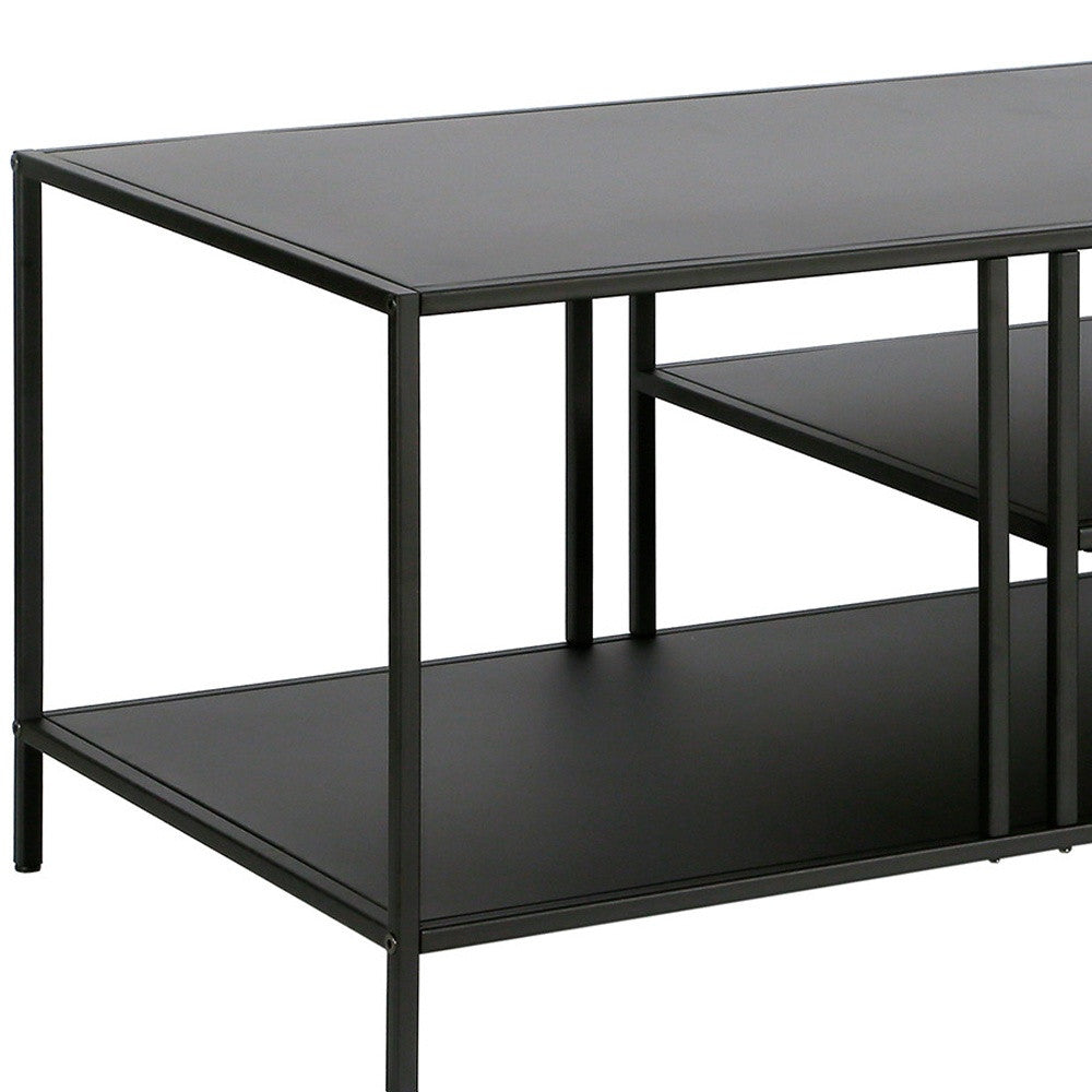- Modern black coffee table with a steel base and top material for a sleek and stylish look.