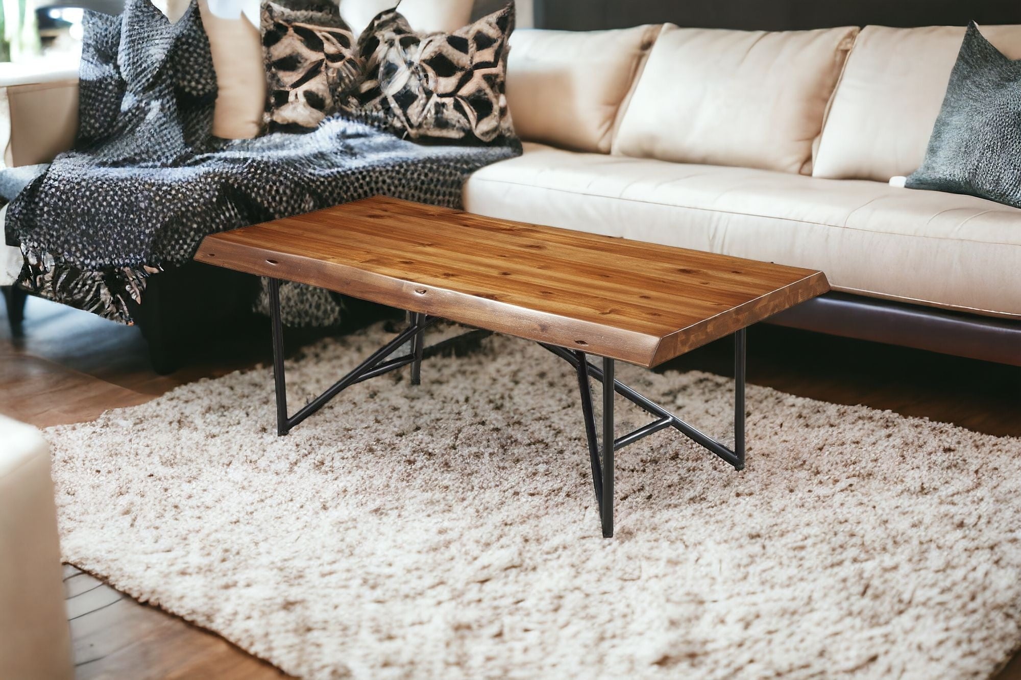 - Crafted with acacia wood, known for its durability and rich brown finish.