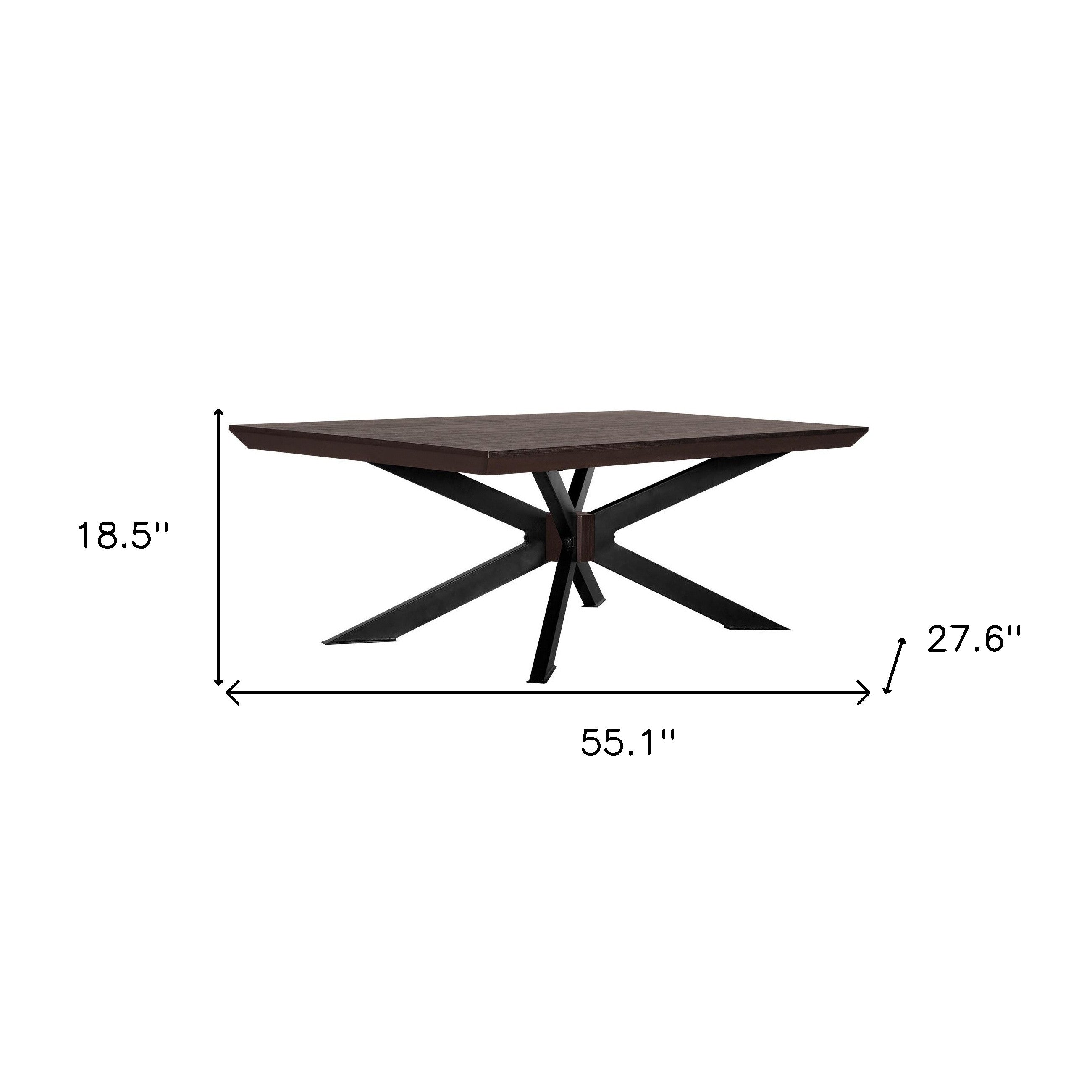 - Solid wood coffee table featuring a rich brown top and sleek black base.