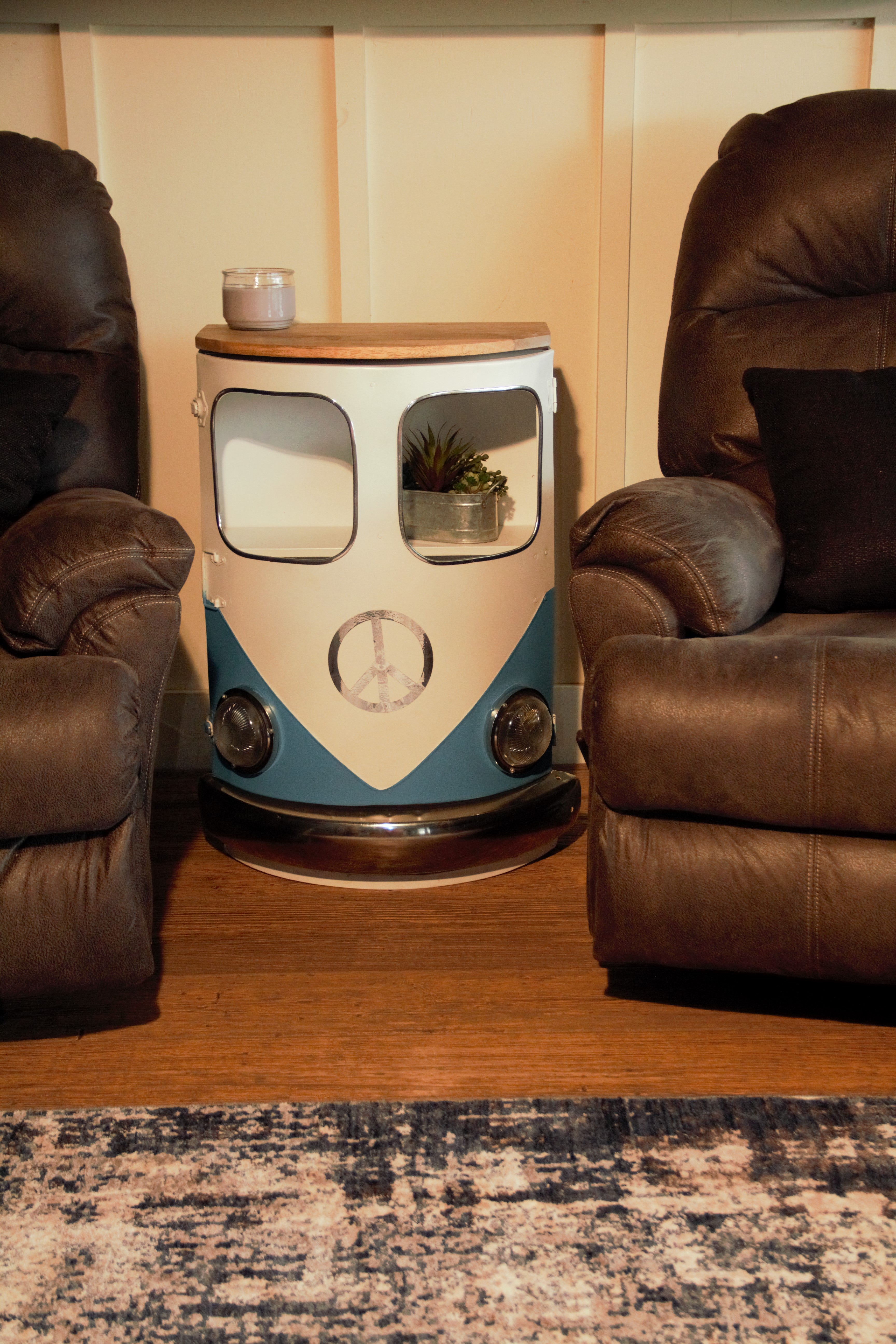- Handcrafted. Designed to look Vintage and Re-purposed.