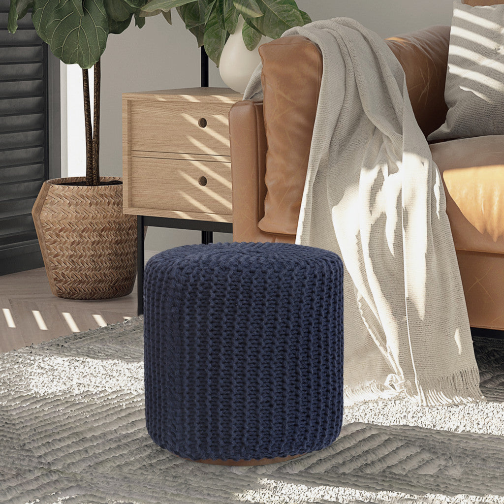 - Add some modern chic to your space with this fashionable pouf that doubles as footrest or extra seat if needed.