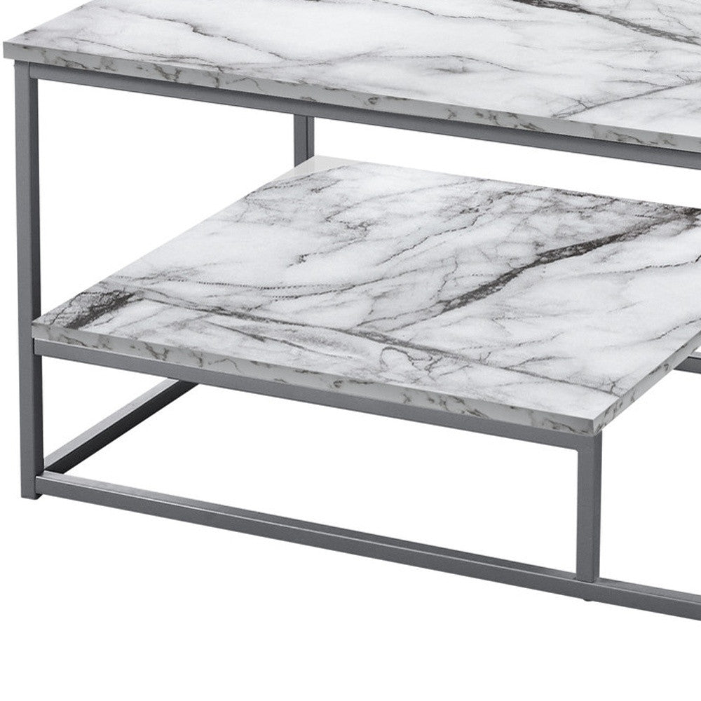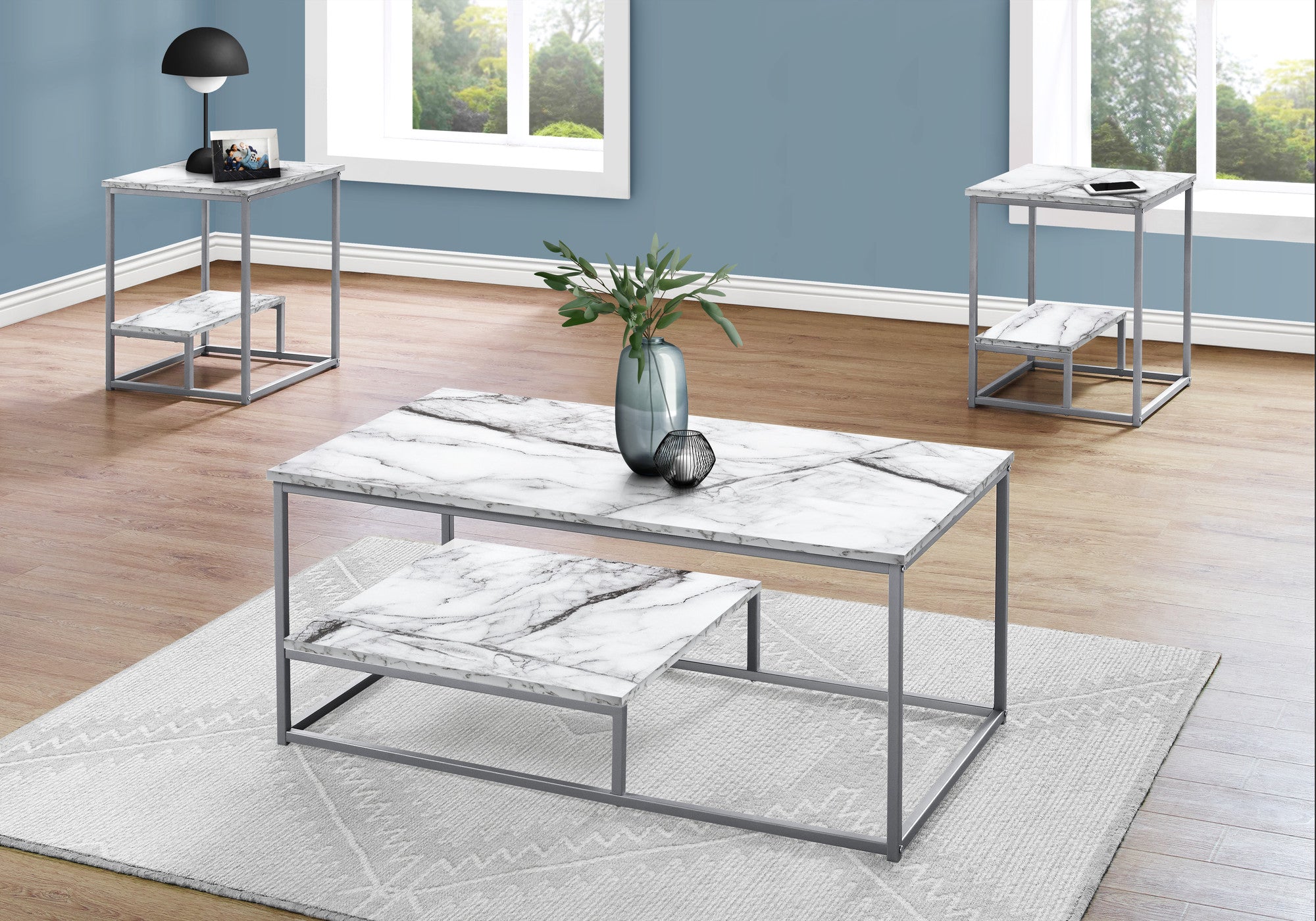 - Set includes 3 coffee tables with a sleek white rectangular top for a modern look.
