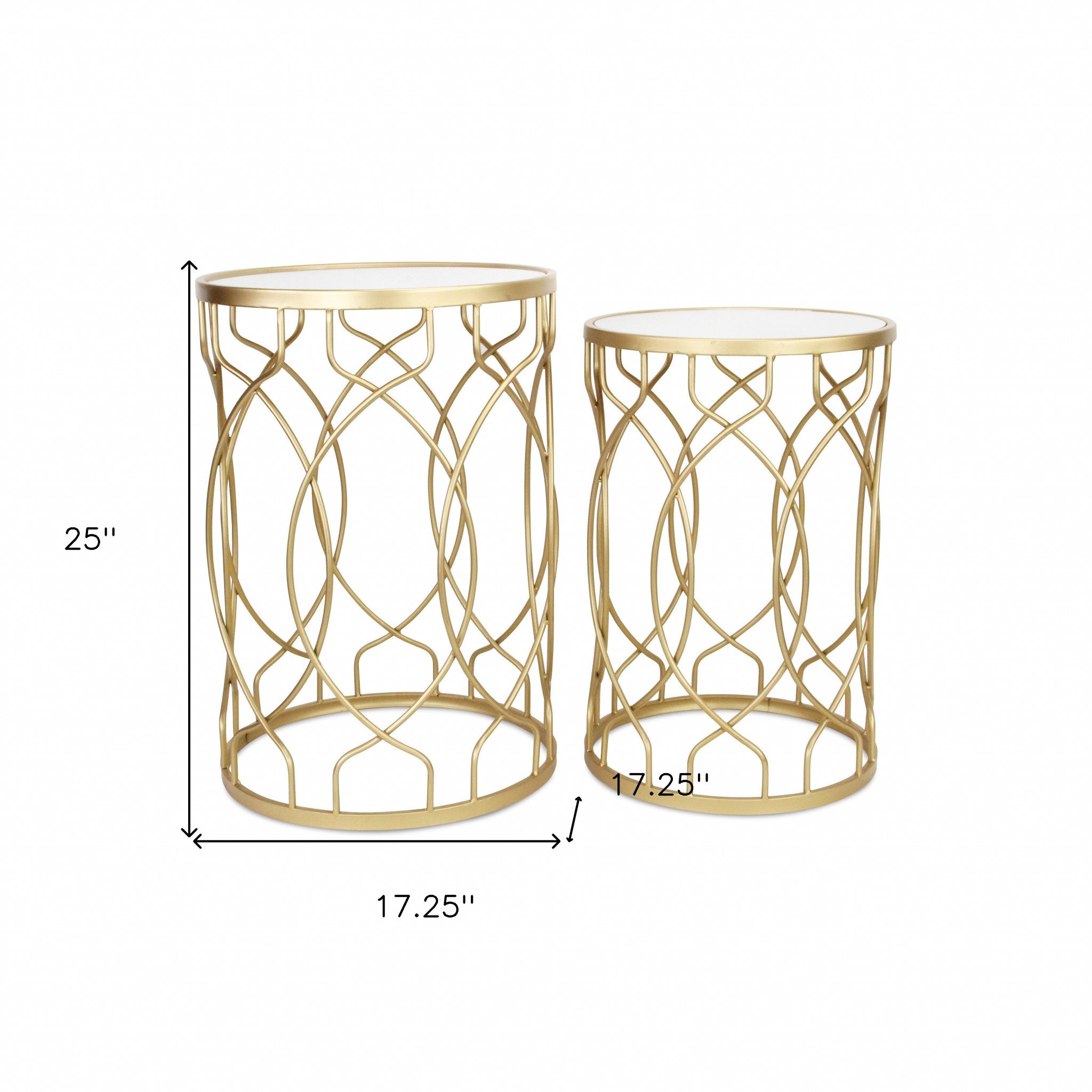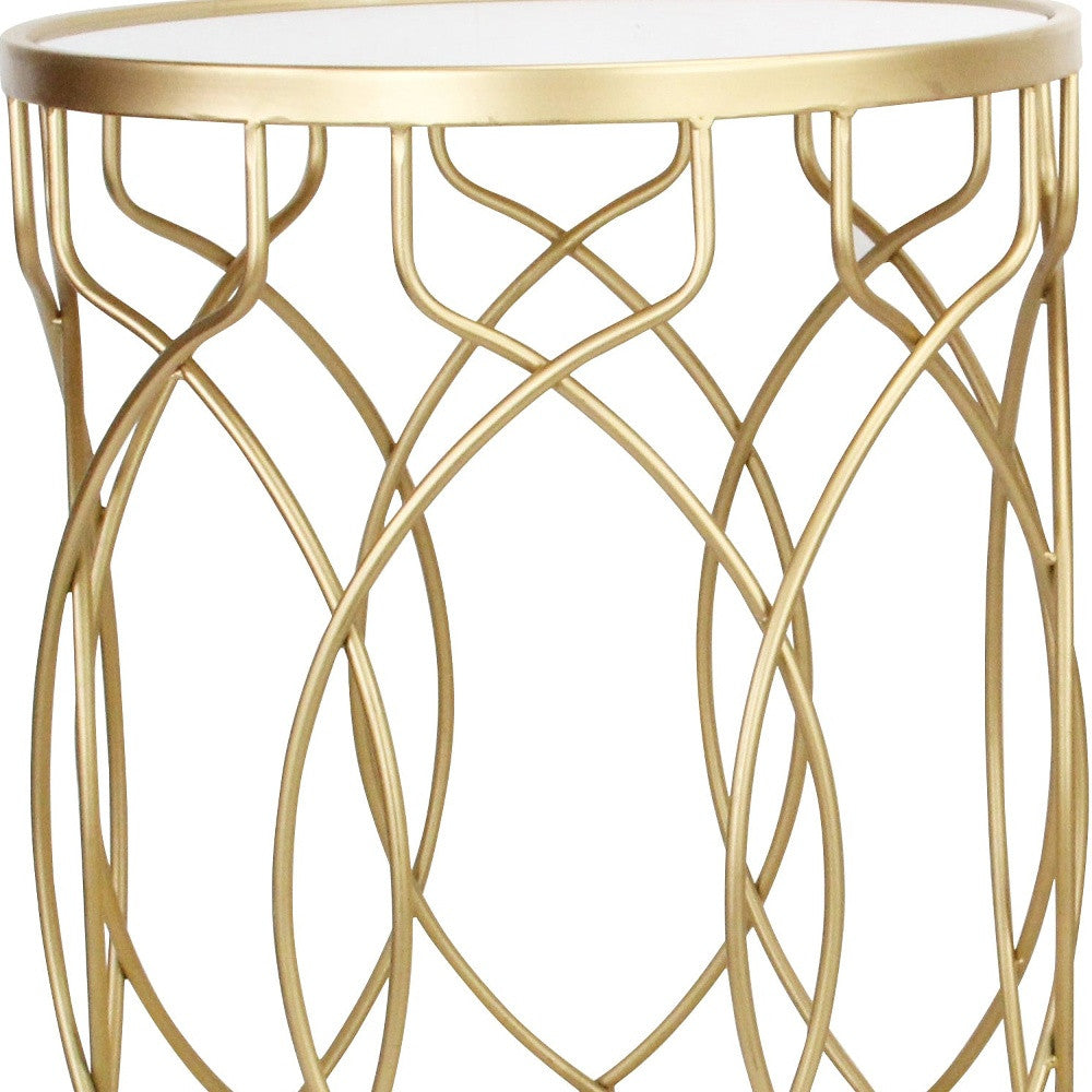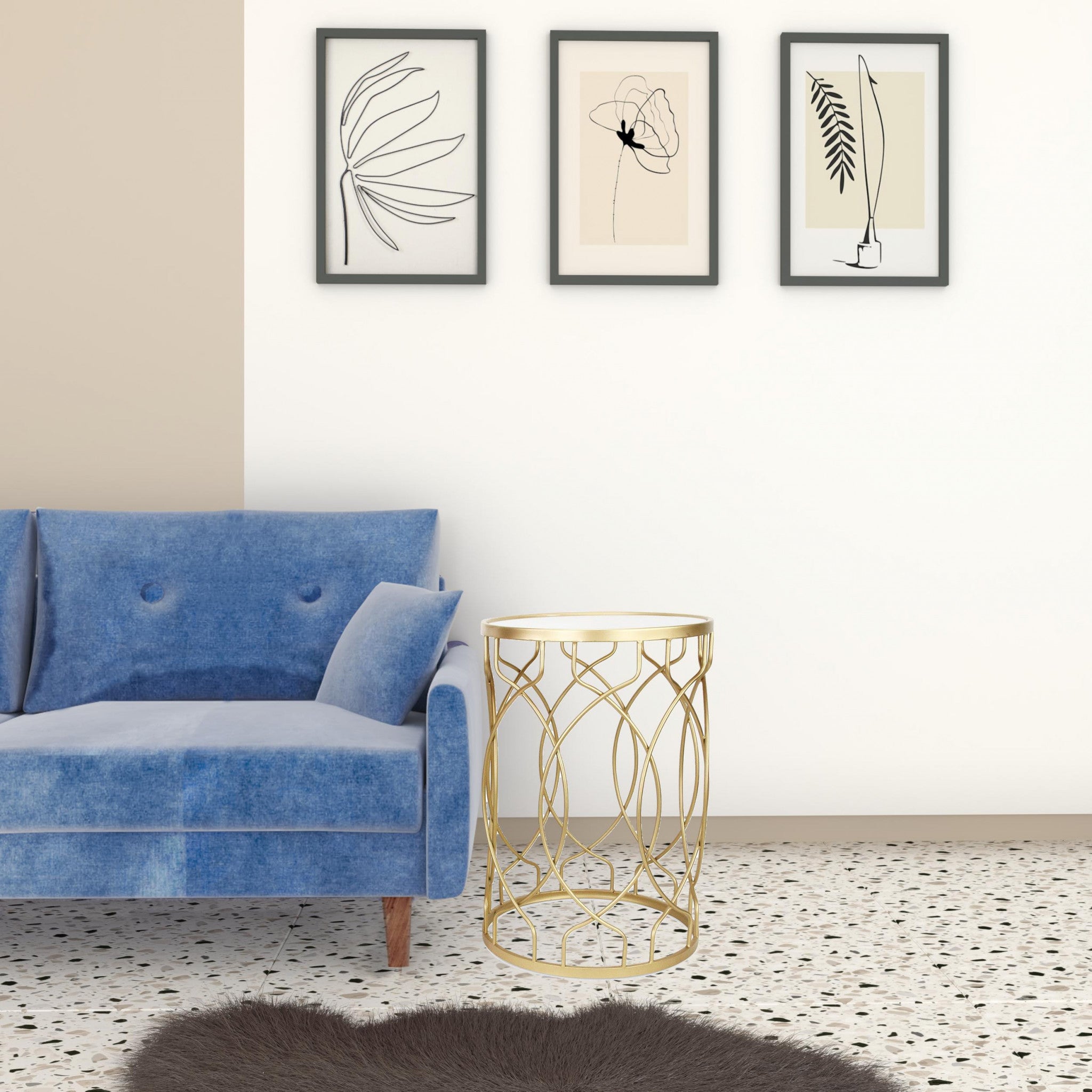 - Gold Open side curvy geometric scroll tables are modern and chic.