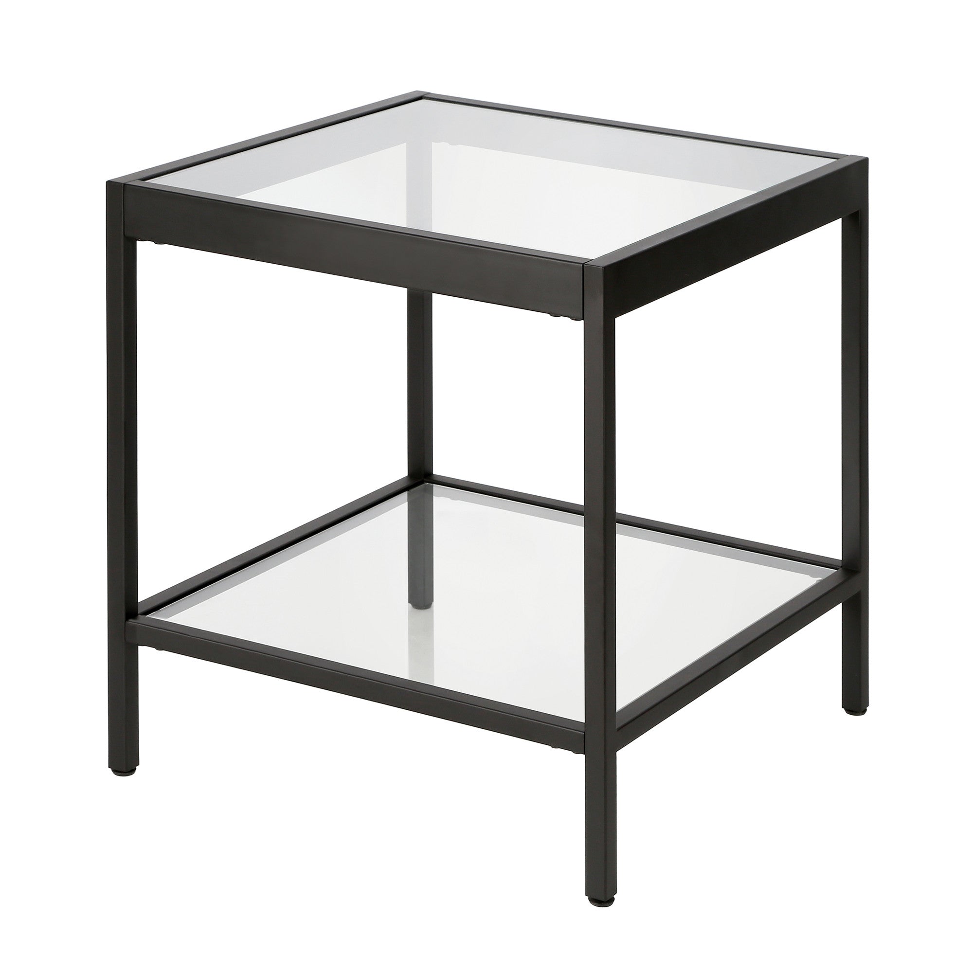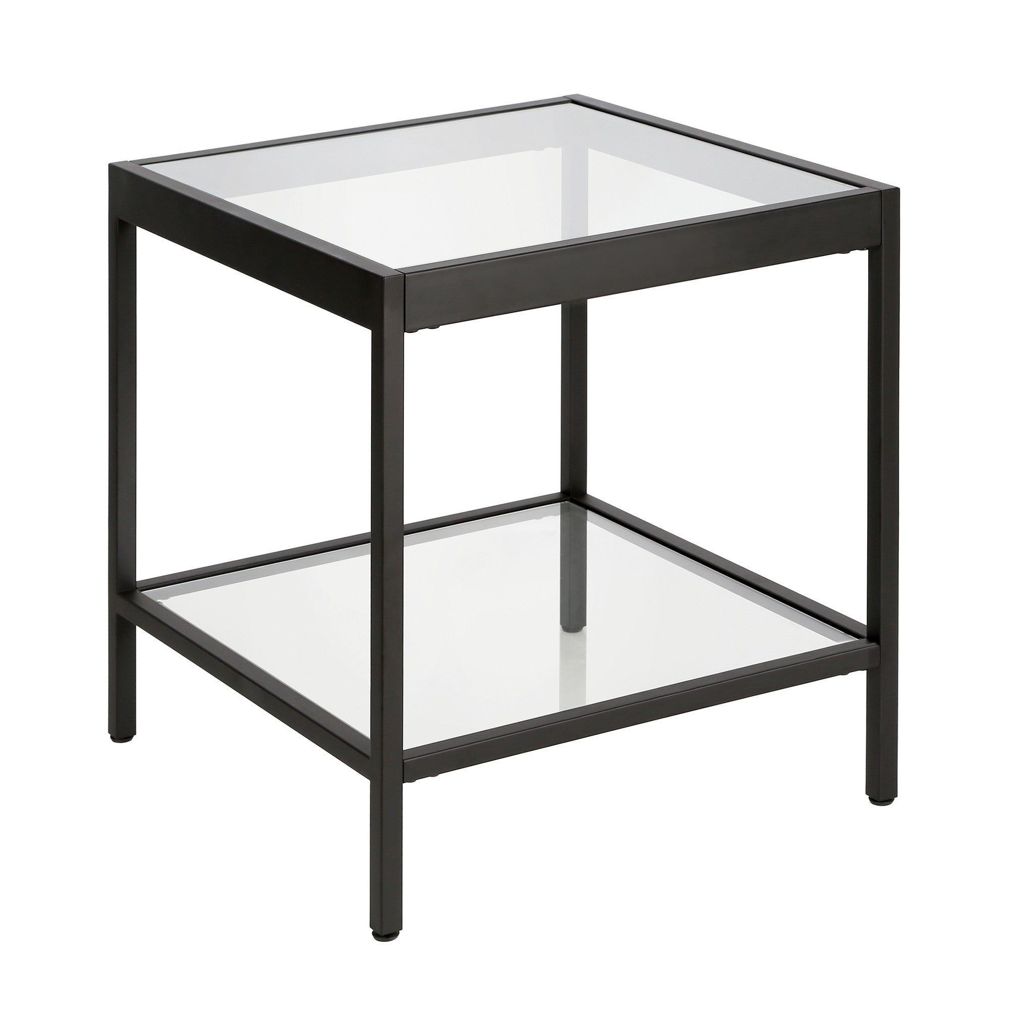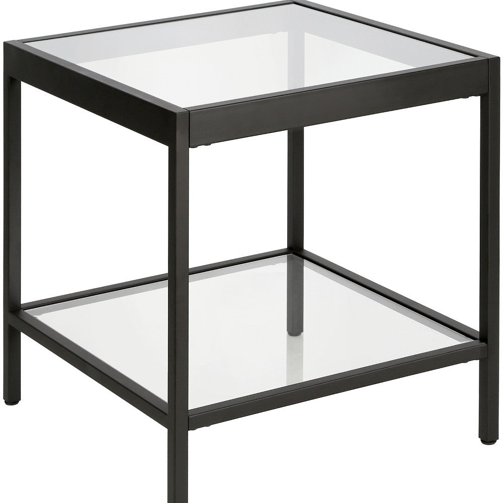 - Features a clear glass square tabletop surface.