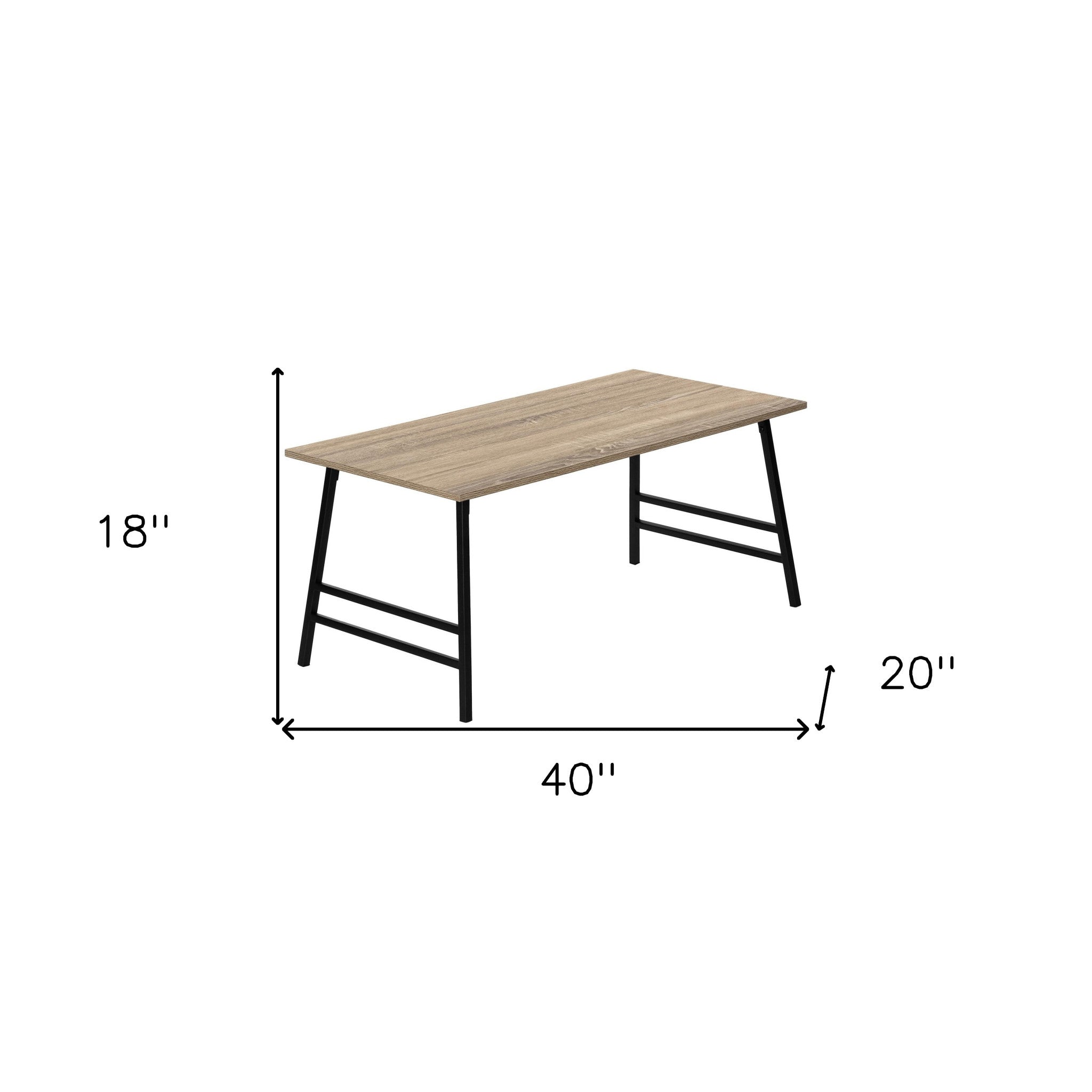 - taupe manufactured wood top with a black metal base.