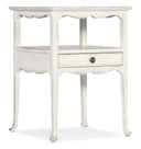 Evoking the relaxed elegance of the coastal South, this charming accent table blends vintage-inspired details with practical storage. Crafted from maple veneers and finished in a soft Magnolia White, it features scalloped trim, an open shelf, and a single self-closing drawer with a designer gray interior—perfect for adding both character and function to a living room, bedroom, or entryway.