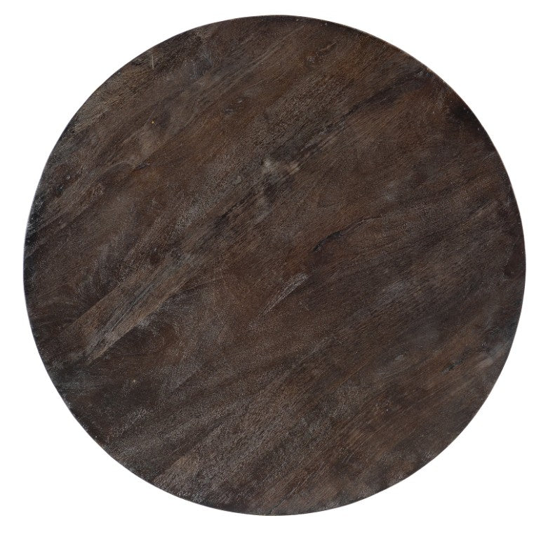 - Design: Round silhouette with hand-carved tribal motif encircling the tabletop edge for an artisanal, globally inspired look