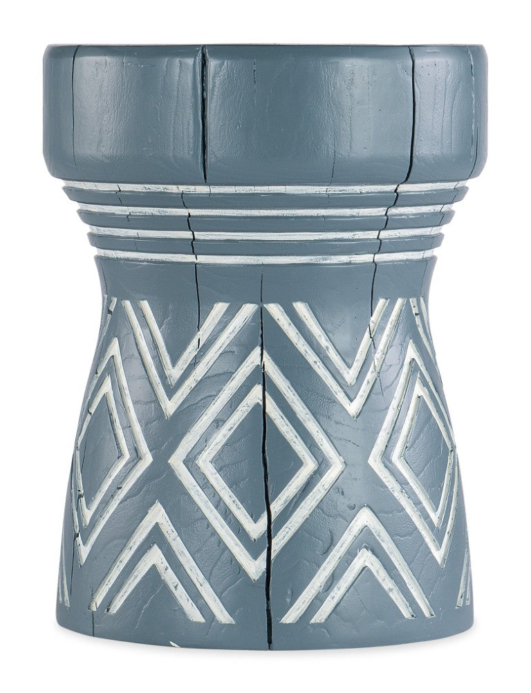 Bring natural texture and bold graphic style to your living space with this hand-finished carved-stump side table. Sculpted from durable cast resin to mimic aged roots and distressed wood, it features a striking monochromatic tribal diamond motif that adds sculptural interest and artisanal character to sofas, chairs, or entryways.