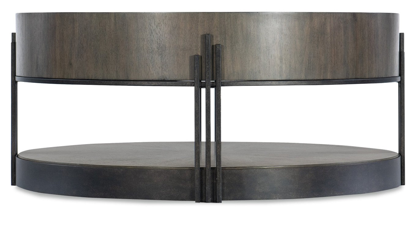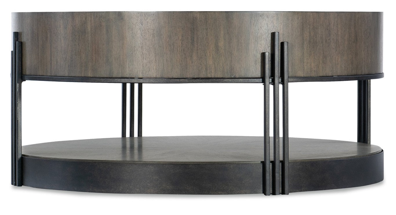 Chic industrial design meets Art Deco glamour in this striking round cocktail table. Crafted to be both a focal point and a functional living-room staple, the table pairs warm acacia wood with dark bronze metal accents and a dramatic starburst veneer top for an elegant, layered look that suits transitional and eclectic interiors.