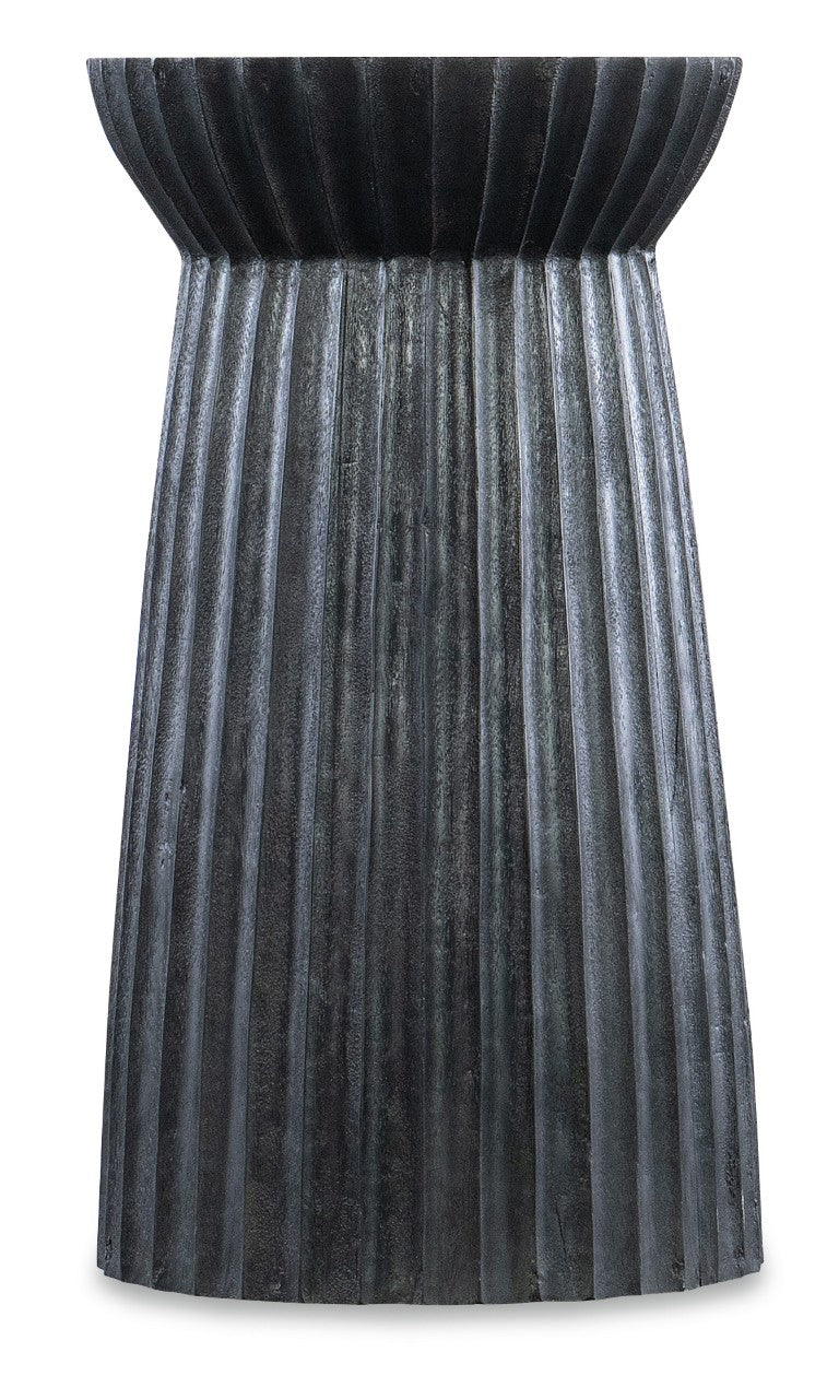 Bring sculptural charm to compact spaces with this striking round spot table. Its scalloped pedestal and rich black natural finish create an elegant focal point that fits easily beside seating, in an entryway, or as a bedside accent. Crafted from mango solids, the table pairs durable construction with a one-of-a-kind grain variation for a warm, artisanal look.