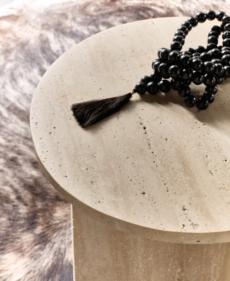 - Material: Solid travertine stone top and base for authentic natural texture and durability