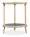 - Shape & Storage: Round tabletop with one fixed lower shelf for display or storage