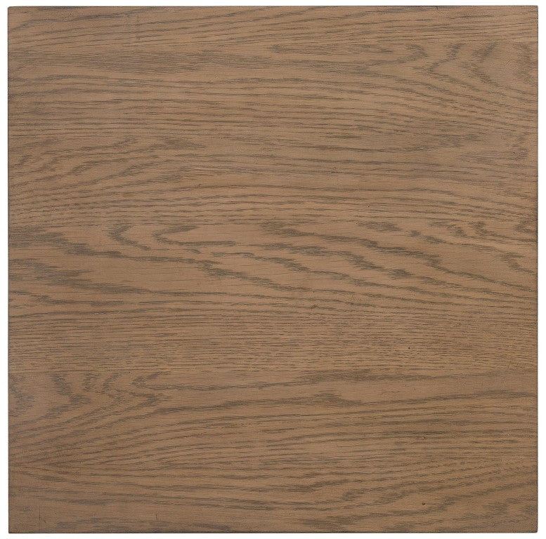 A compact statement piece for transitional interiors, the Sonnet Square End Table pairs clean geometric lines with warm, natural materials. Its chunky square form and subtle satin-finished metal waistbands create visual interest without overwhelming a room, while the light earthen-toned oak veneer and textured detailing lend a refined, lived-in look. Ideal beside a sofa or armchair, it provides surface utility and sculptural presence in a small footprint.