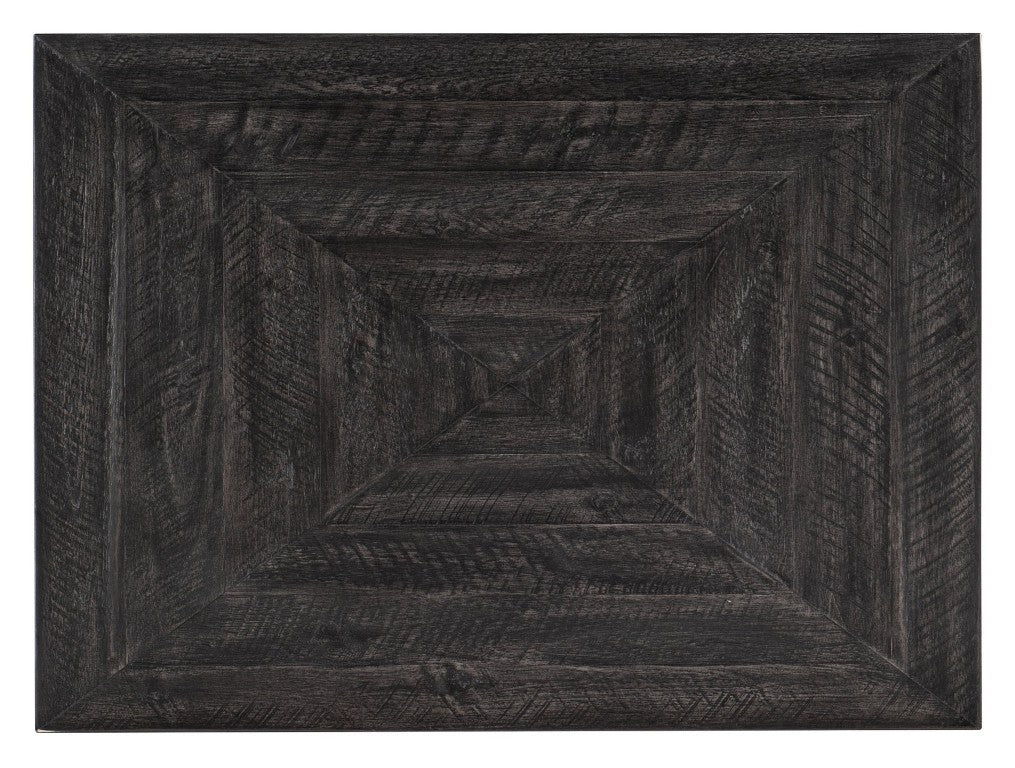 - Construction: Solid Acacia wood top with a distressed black finish and metal base in a brushed pewter tone for durable everyday use