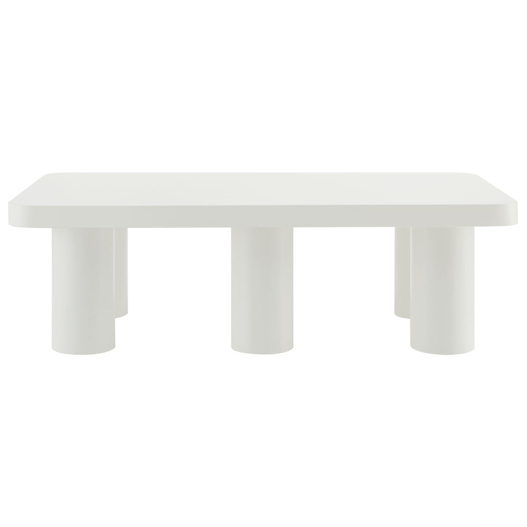 - Rectangular Coffee Table Cylindrical Legs Matte Finish Non-Marking Felt Pads Rounded Corners Assembly Required