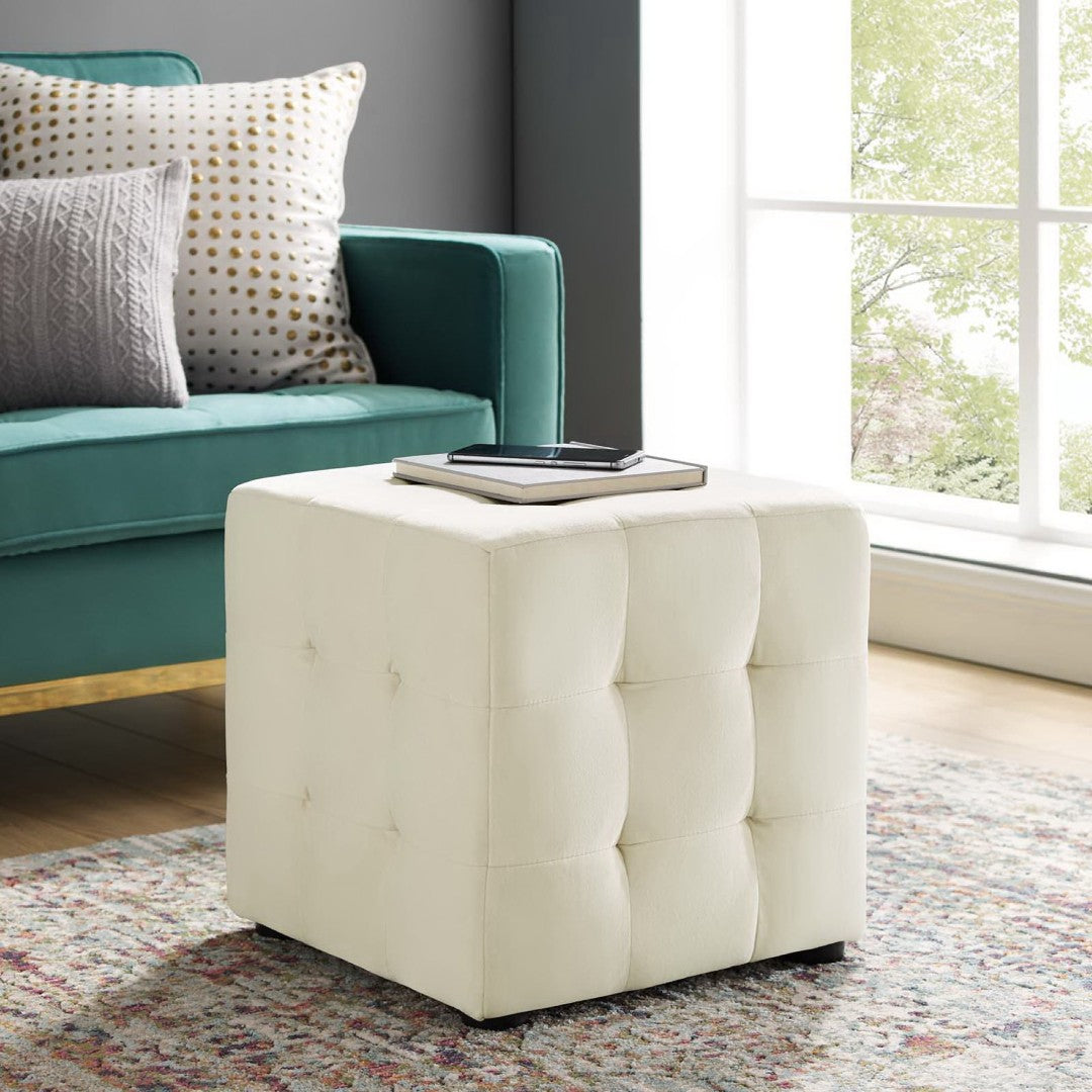 - Cube Shaped Ottoman Velvet Polyester Upholstery Durable Stain-Resistant Fabric Stain Resistant Fabric Dense Foam Padding Comes Fully Assembled Ottoman Weight Capacity: 441 lbs.