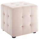 Give your living space an elegant, functional accent with this Contour tufted cube ottoman. Upholstered in stain-resistant performance velvet and topped with classic button tufting, it pairs refined style with everyday durability to serve as a footrest, extra seat, or decorative focal point in any room.