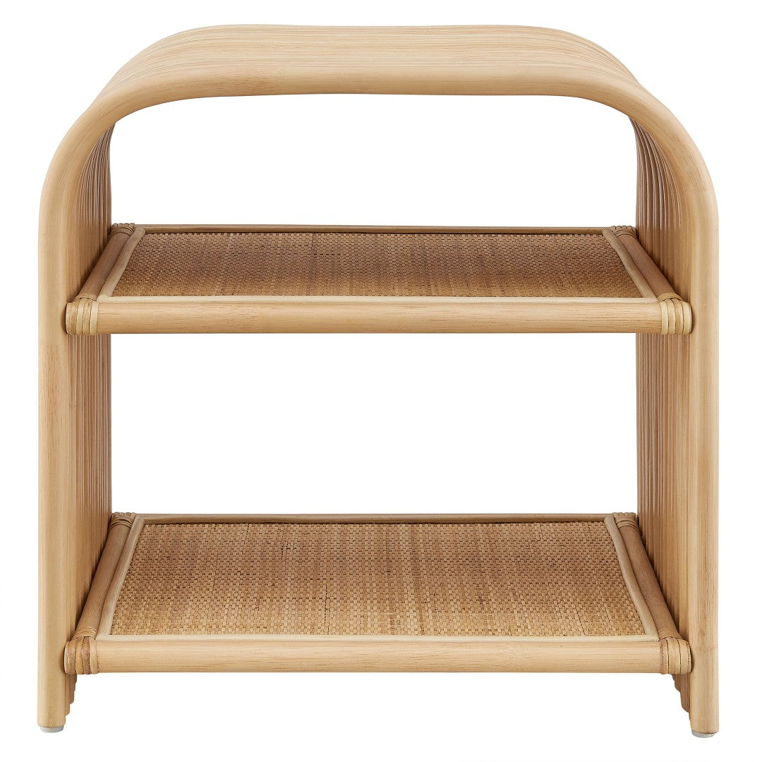 Add relaxed, organic charm to any room with this natural rattan side table. Its rounded silhouette and woven texture create an airy, coastal-inspired look while offering practical storage and stable support. Fully assembled and finished with non-marking foot caps, it’s ideal as a bedside nightstand, an accent beside a lounge chair, or a stylish addition to a covered patio or sunroom.