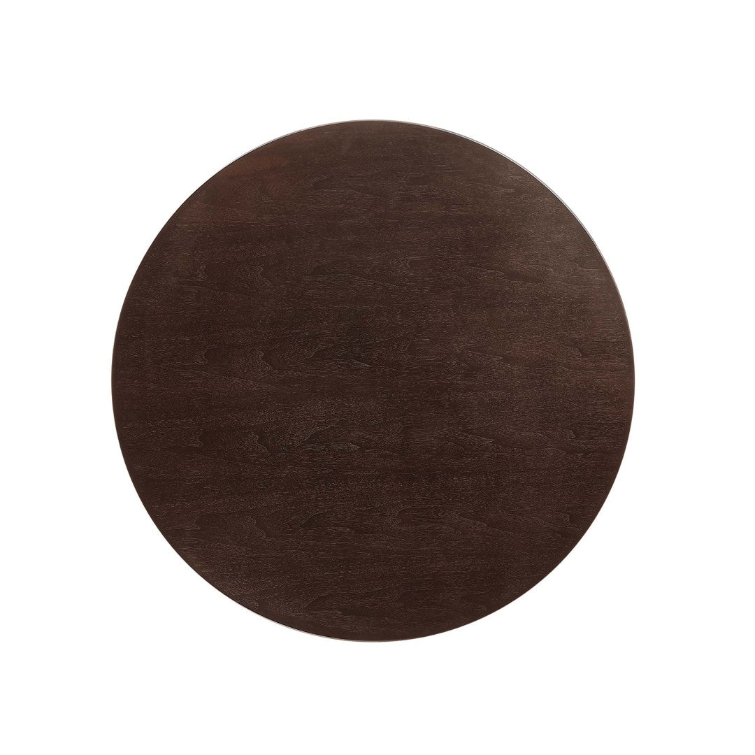 - Materials: Durable MDF core with wood grain veneer finish on the tabletop and a tapered metal pedestal base finished in chip-resistant lacquer for long-lasting wear.