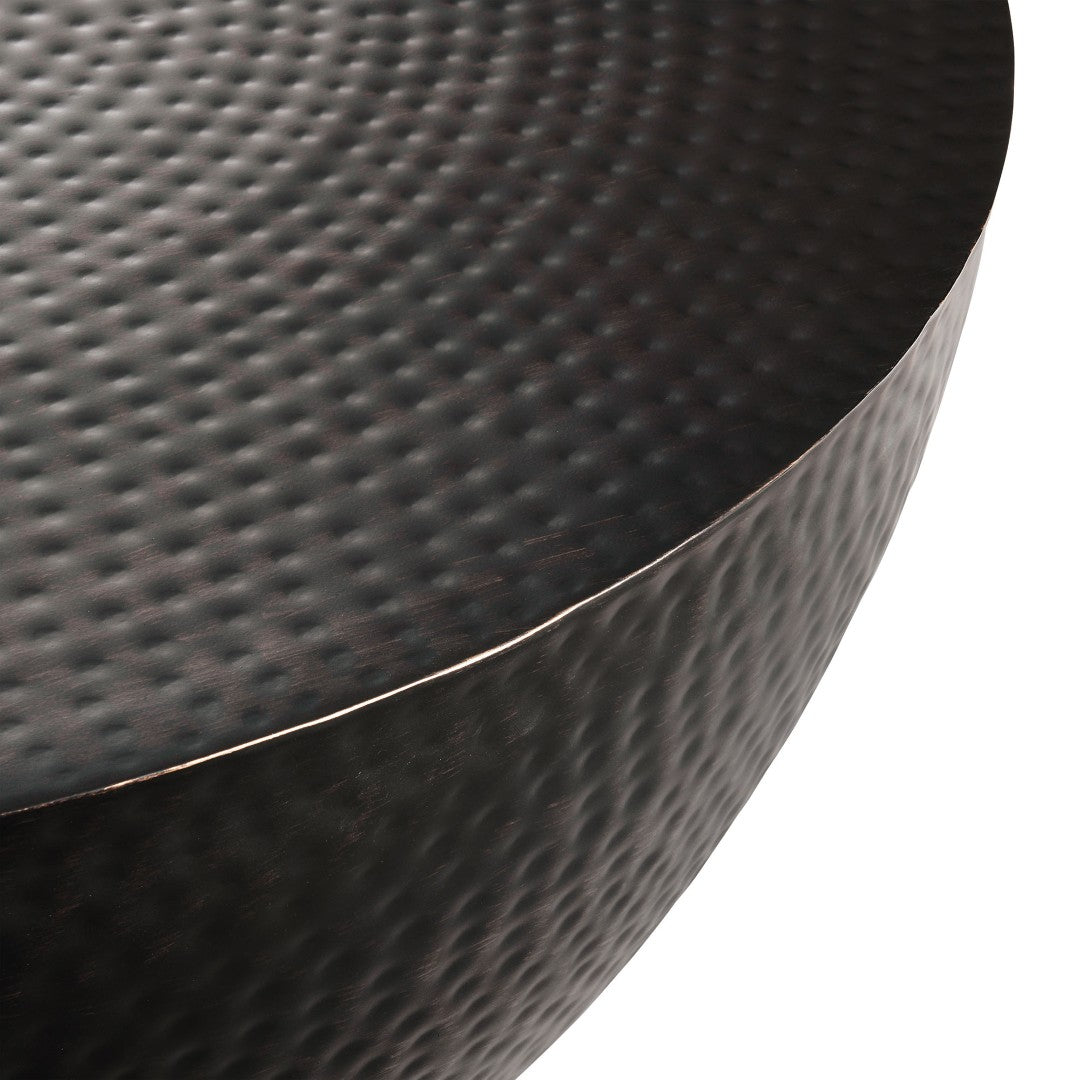 Bring bold, contemporary style and tactile appeal to your living room with this sculptural drum-style coffee table. Its hammered-metal finish and rounded silhouette create a striking focal point while providing a practical surface for décor, drinks, and everyday use. Durable construction and floor-protecting pads ensure it looks great and functions well in modern interiors.