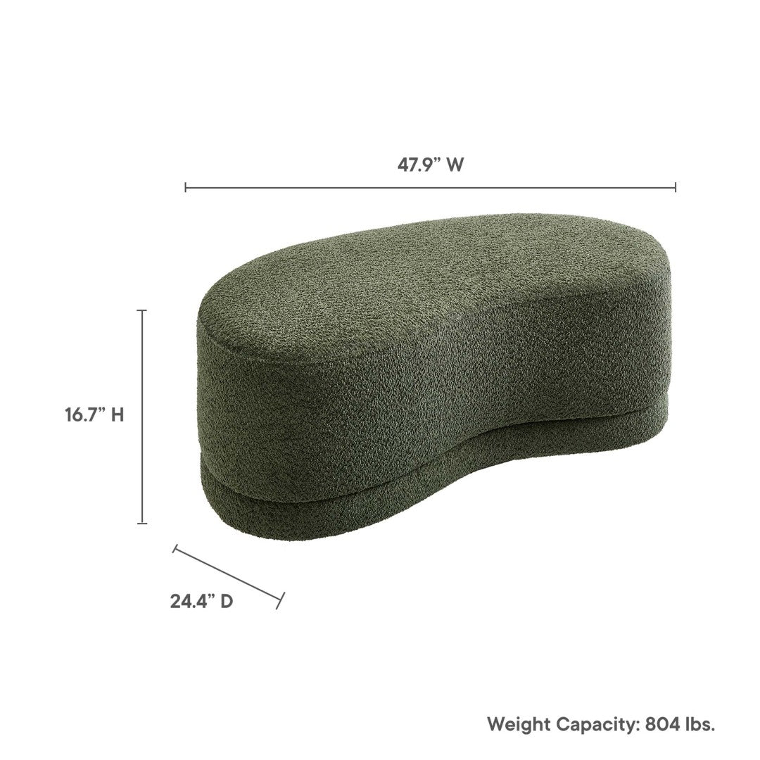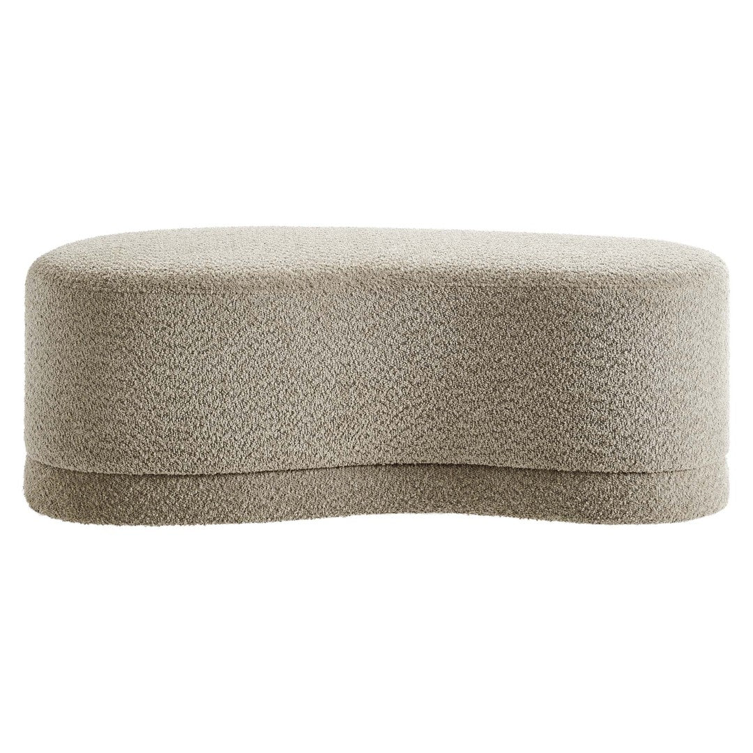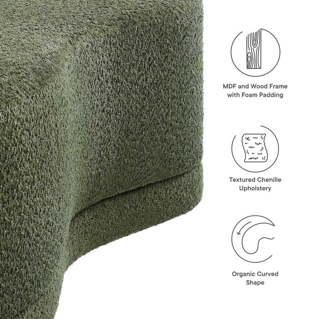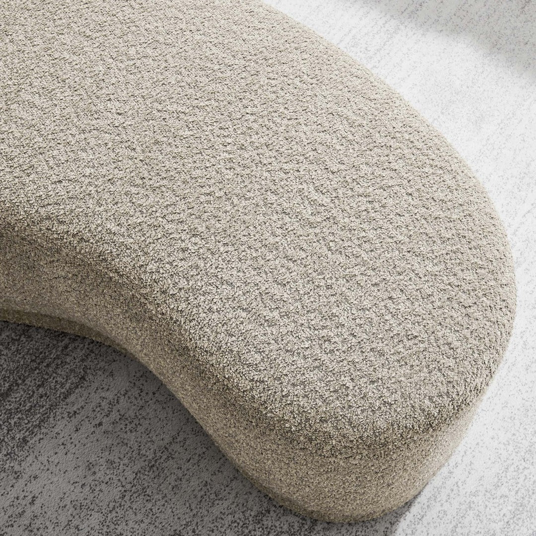 Bring modern curvature and plush comfort to your living room or bedroom with the Nimbus upholstered ottoman. Its organic silhouette, boucle-like chenille fabric, and dense foam padding create a soft, inviting surface that works as a footstool, bench, or casual coffee table—delivering style and function in one fully assembled piece.