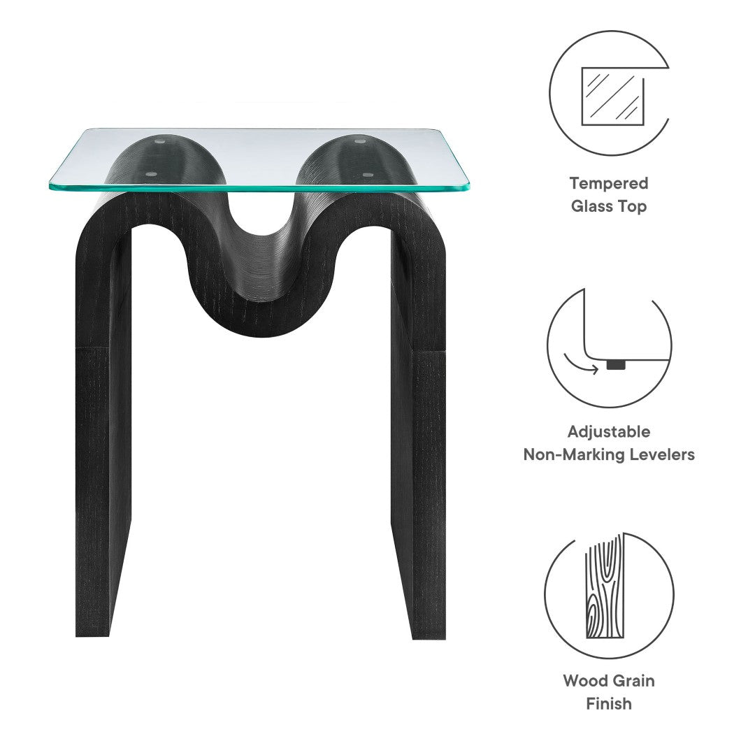 Brighten any room with the Ondine Glass Top Side Table — a sculptural accent piece that blends retro-inspired form with modern functionality. Its bold, wave-like wooden frame and clear tempered glass top create an airy, artful silhouette that showcases the table’s flowing base while providing a sturdy surface for drinks, decor, or bedside essentials. Durable construction, non-marking leveling feet, and anti-skid grips ensure both stability and floor protection, making Ondine as practical as it is eye-catching.