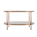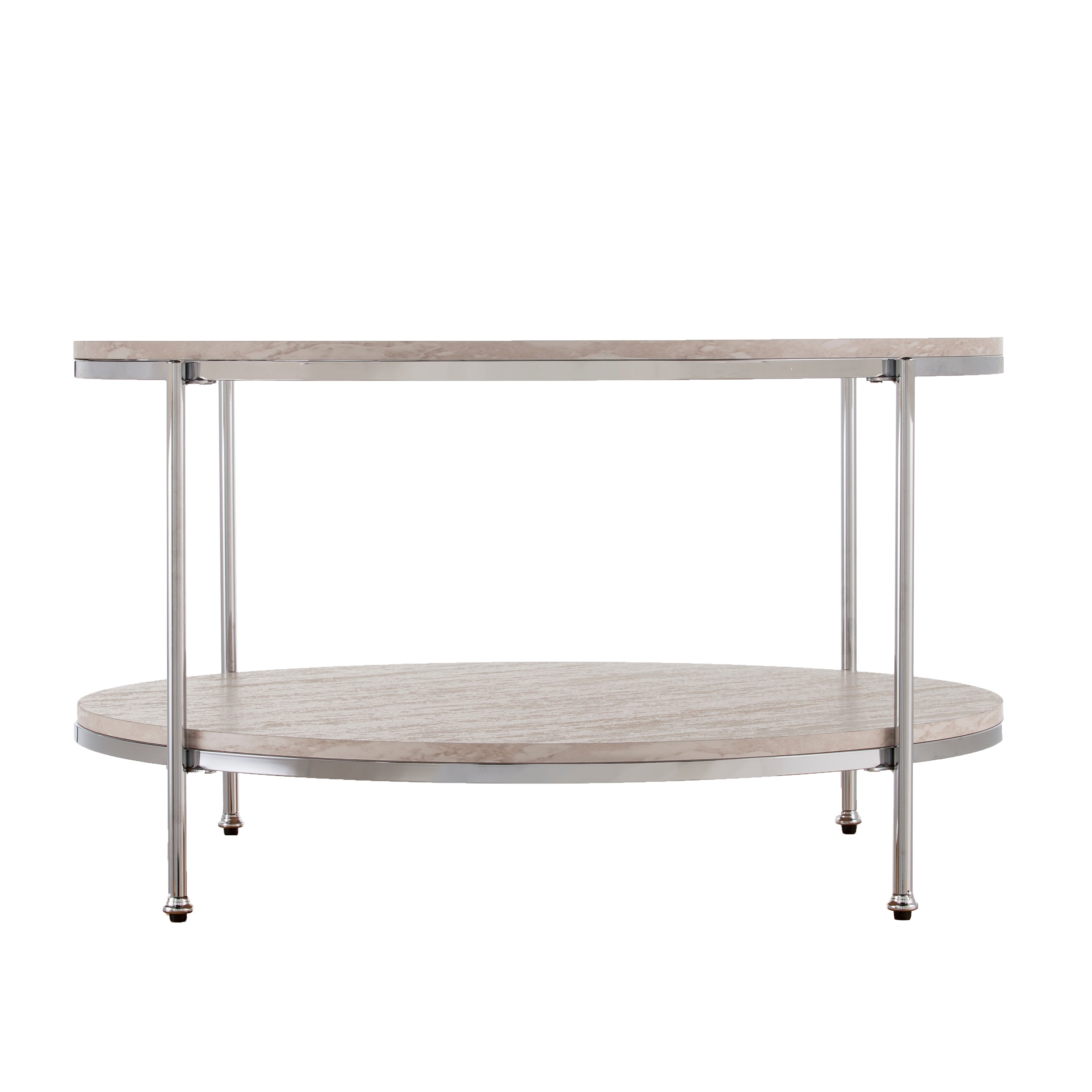 - Feature 1: Round faux stone coffee table