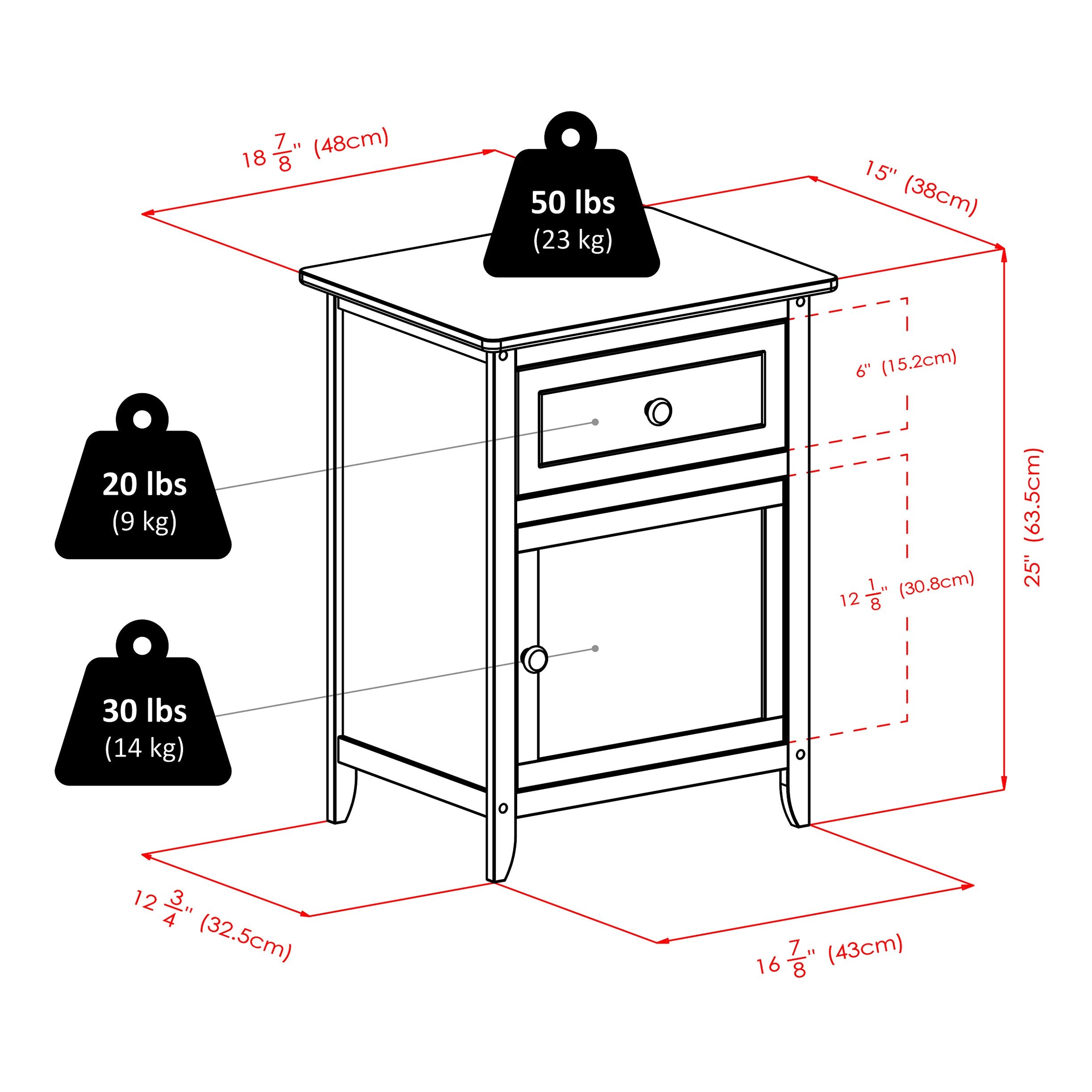 Simple and highly functional Accent or Night Stand is perfect for any room décor and anywhere in the home. It has plenty of storage include one drawer and cabinet with wood door and satin nickel knob.