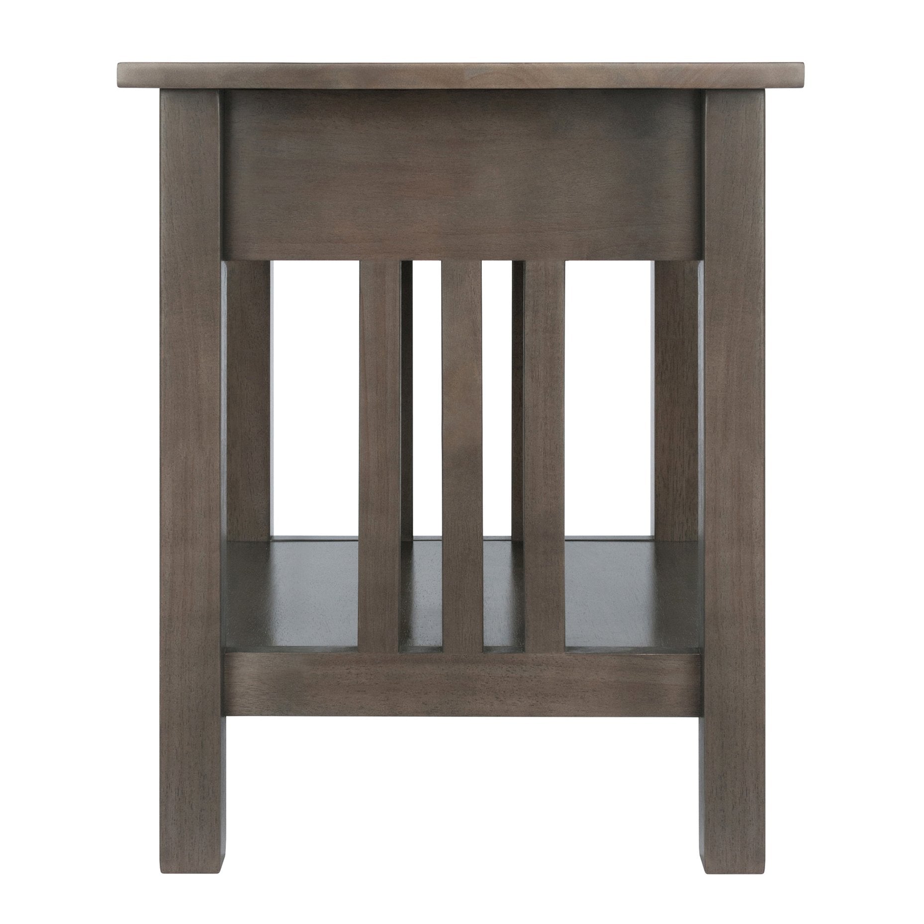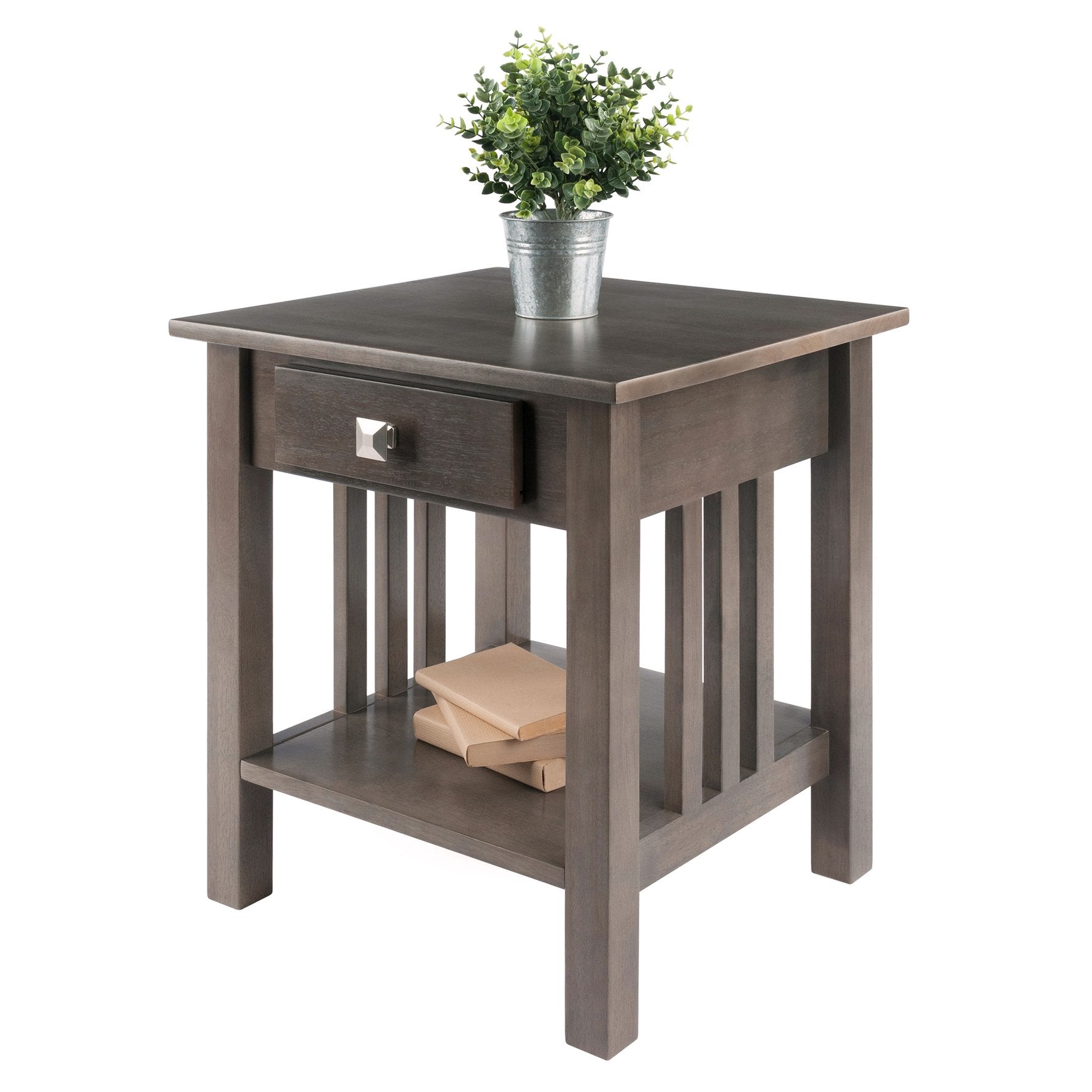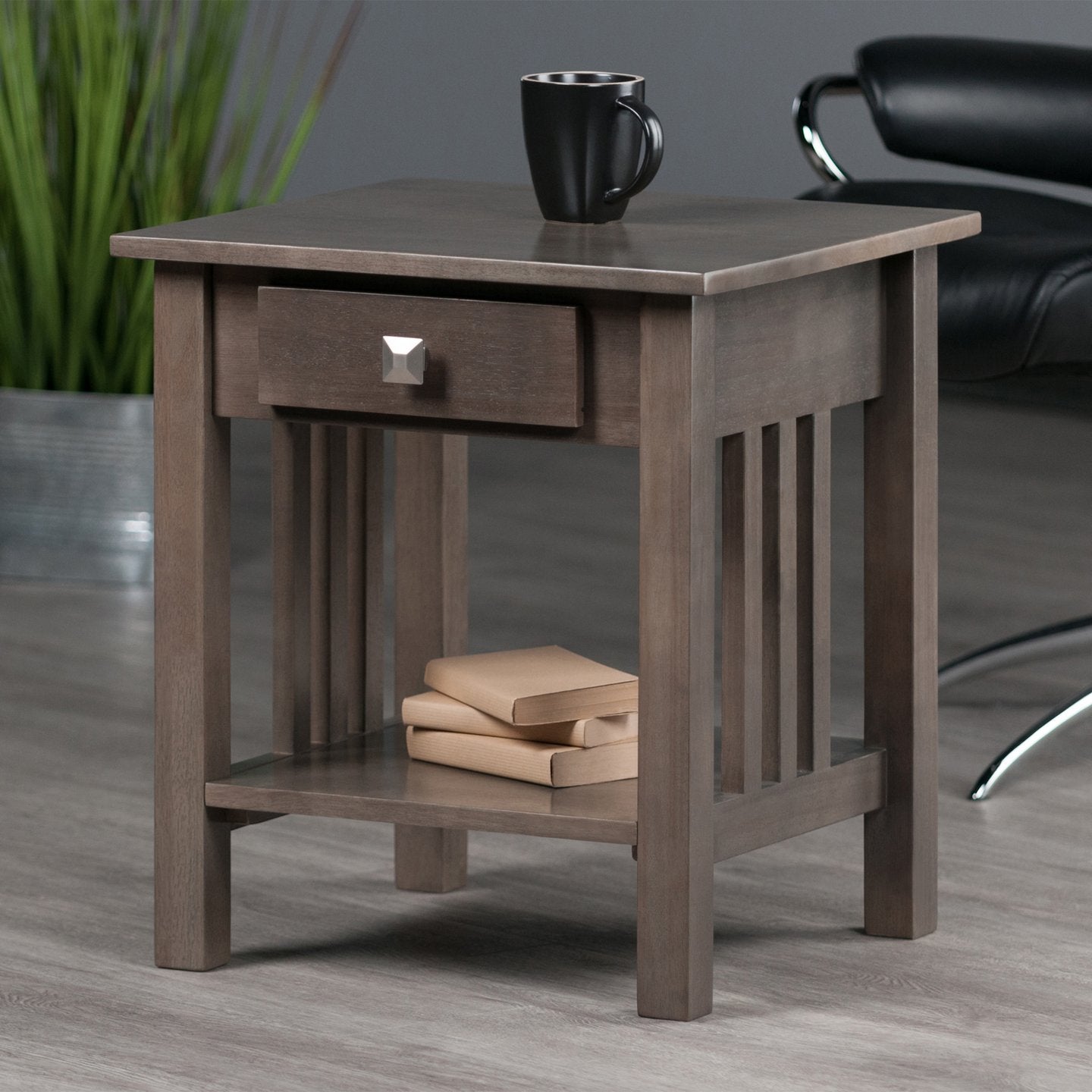 The Stafford End Table is a lovely fusion of classic design and contemporary Oyster Gray finish. A drawer and open shelf offer storage options as a bedside table or in the living room next to the sofa. Solid Wood construction for long-lasting integrity.