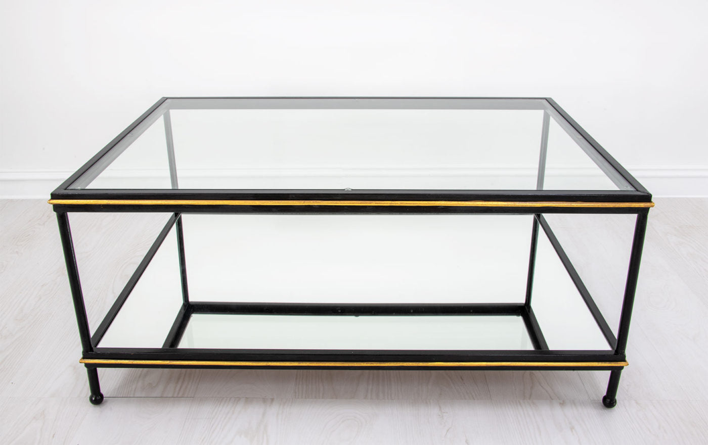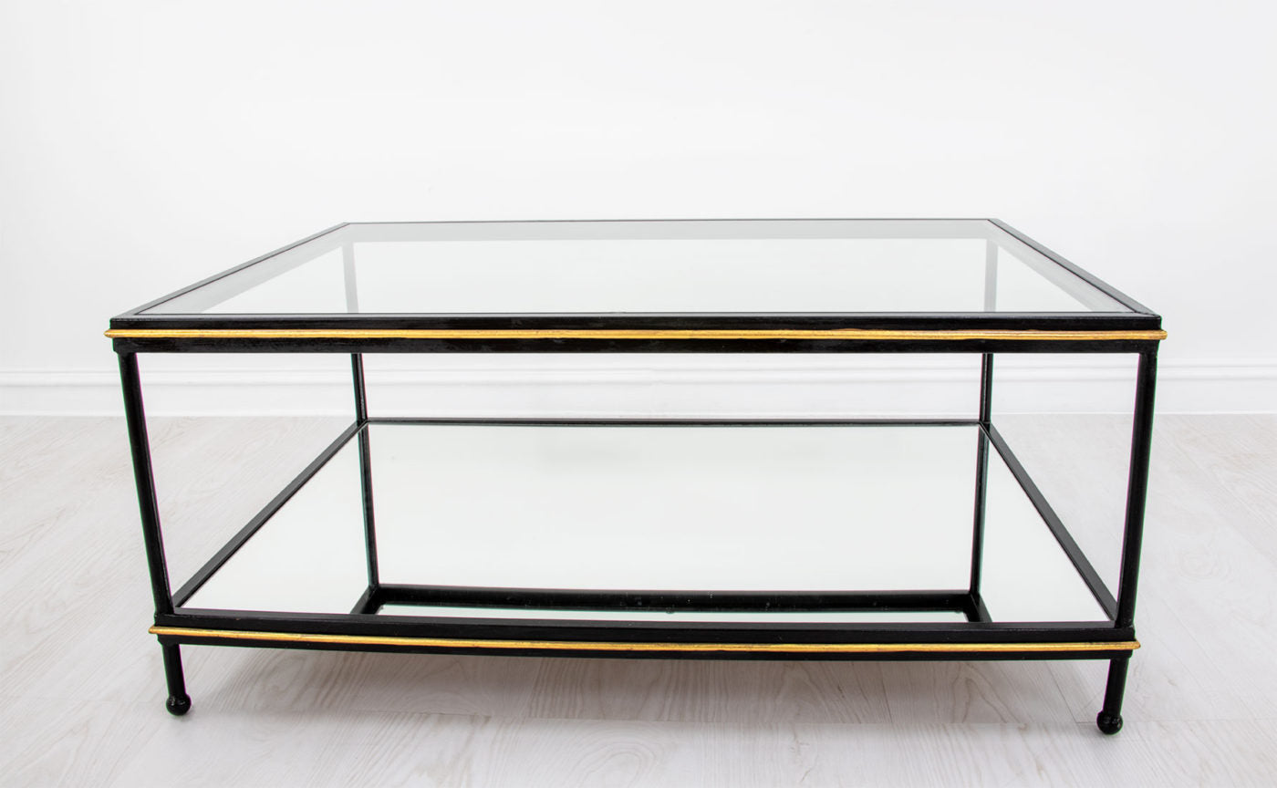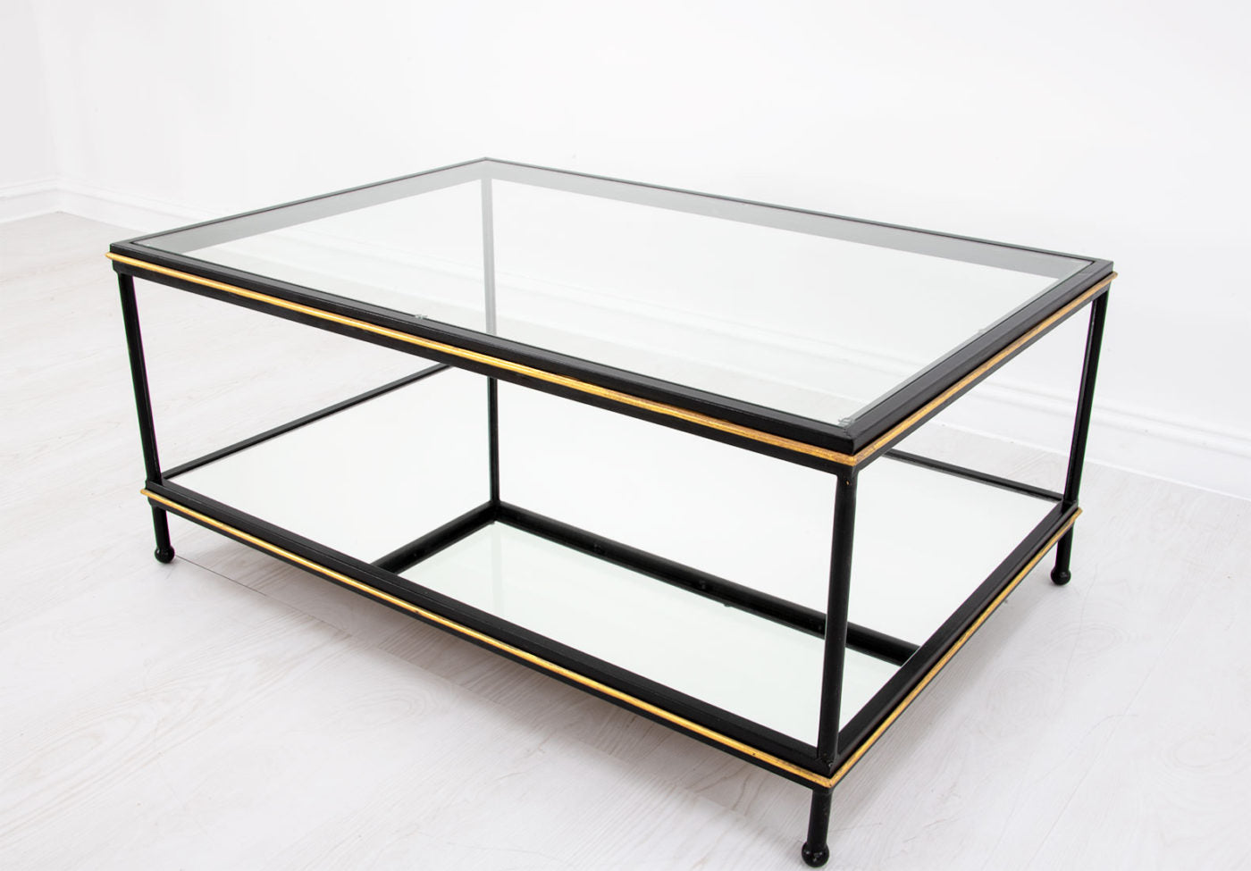 CT377 black and gold coffee table have tempered glass top with mirrored bottom shelf. This beautiful coffee table combine premium quality materials that are scrutinized for perfection.