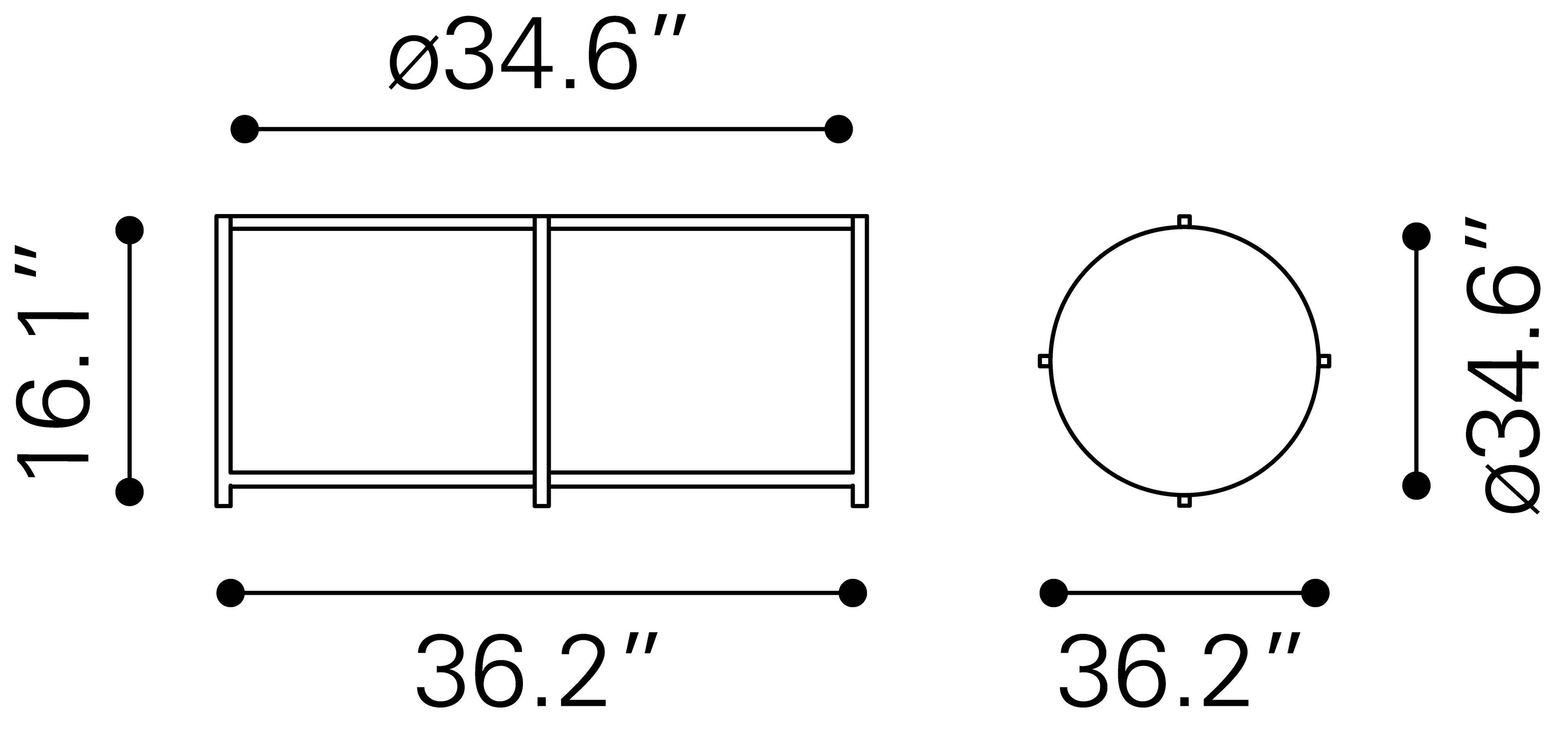 - Features: Product 1 Dimensions: 36.2" W x 36.2" D x 16.1" H
