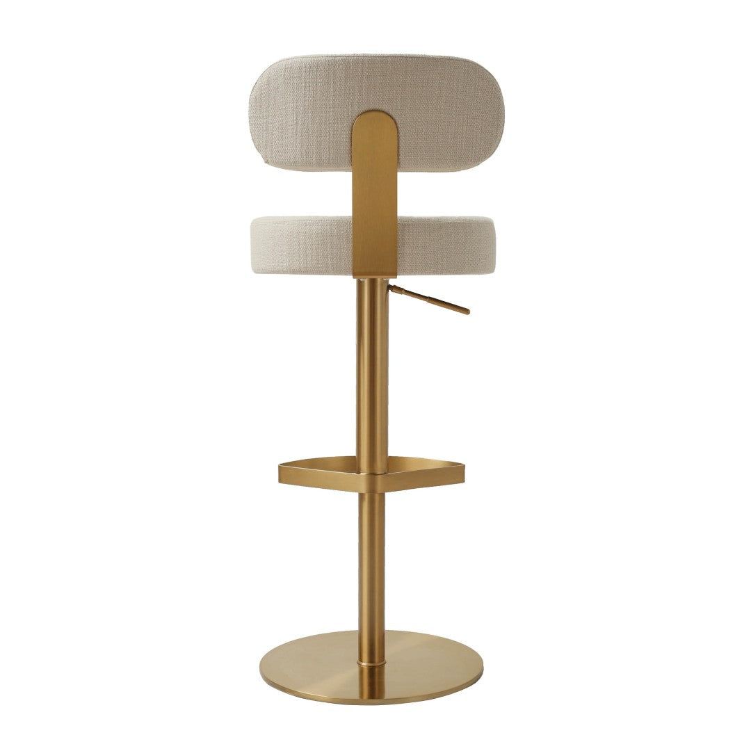 Elevate any kitchen island or home bar with the Primrose Cream textured performance fabric adjustable stool ” a refined blend of Art Deco-inspired design and durable, user-friendly construction. Its textured, liquid-repellent upholstery and solid stainless-steel base deliver long-lasting style and practical performance for everyday use, while the swivel and adjustable-height mechanism ensure comfortable seating for a range of counters and users.