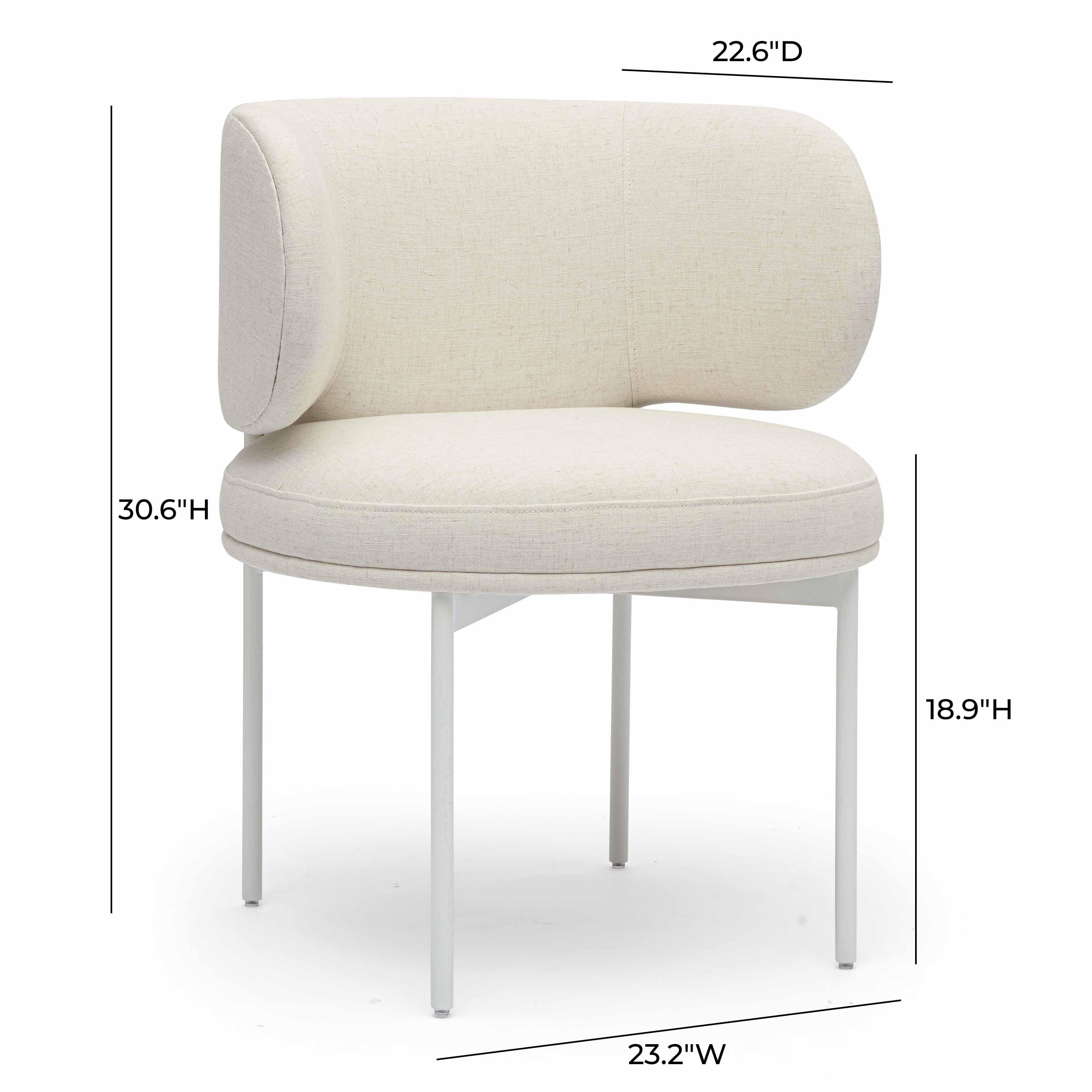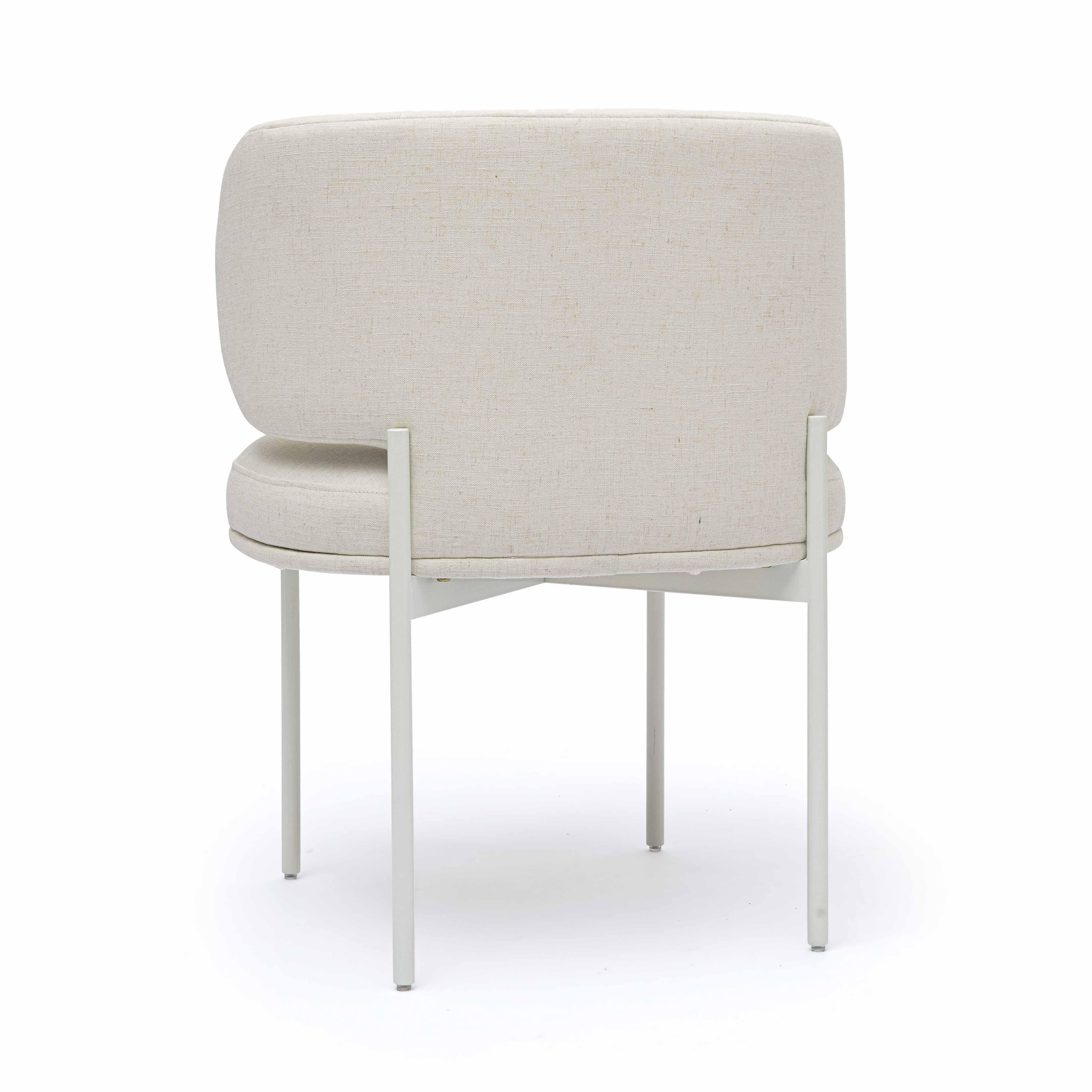 With retro curves and a sculptural metal frame, the Maureen Dining Chair makes a strong statement at the table. Wrapped in high-performance boucle or upcycled linen, its foam-padded back brings both comfort and polish.